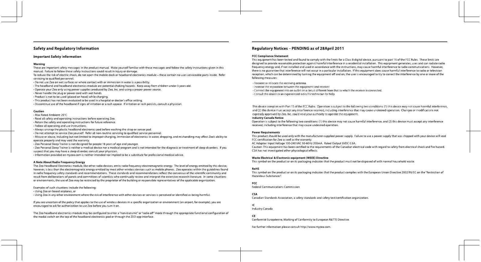 Axon Labs Zeo Mobile Sleep Manager ZEO301 Revised 0825 V2