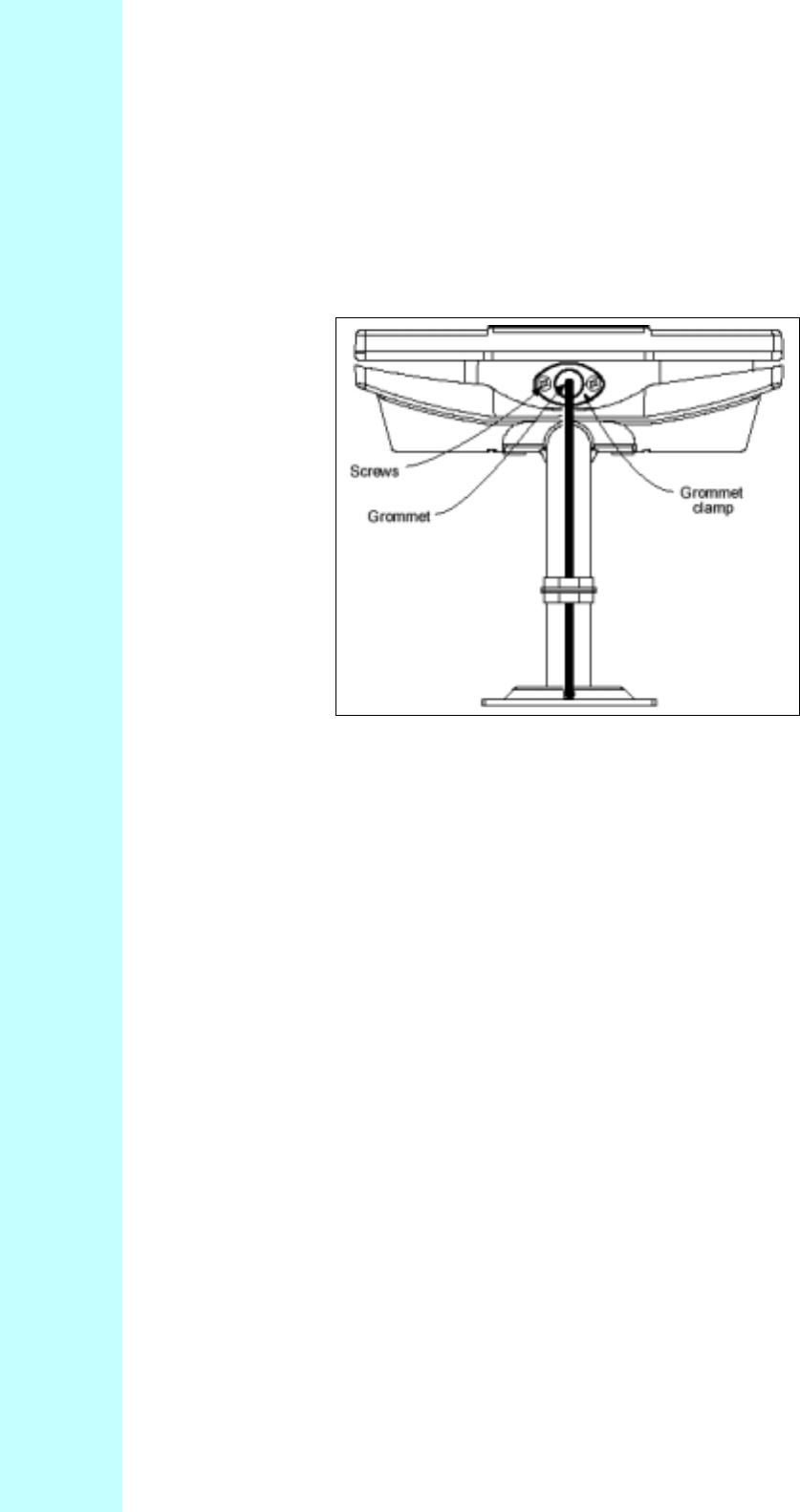 14. Slide the grommet clamp up the cable and align the holes with the mounting holes on the
