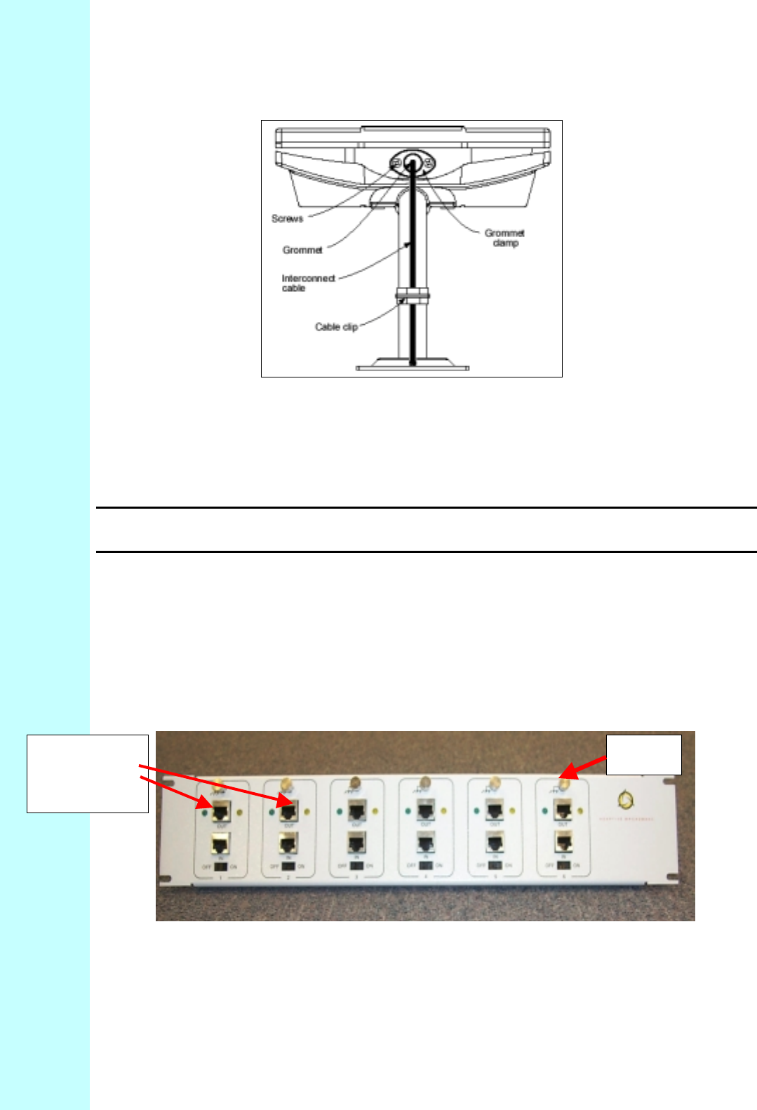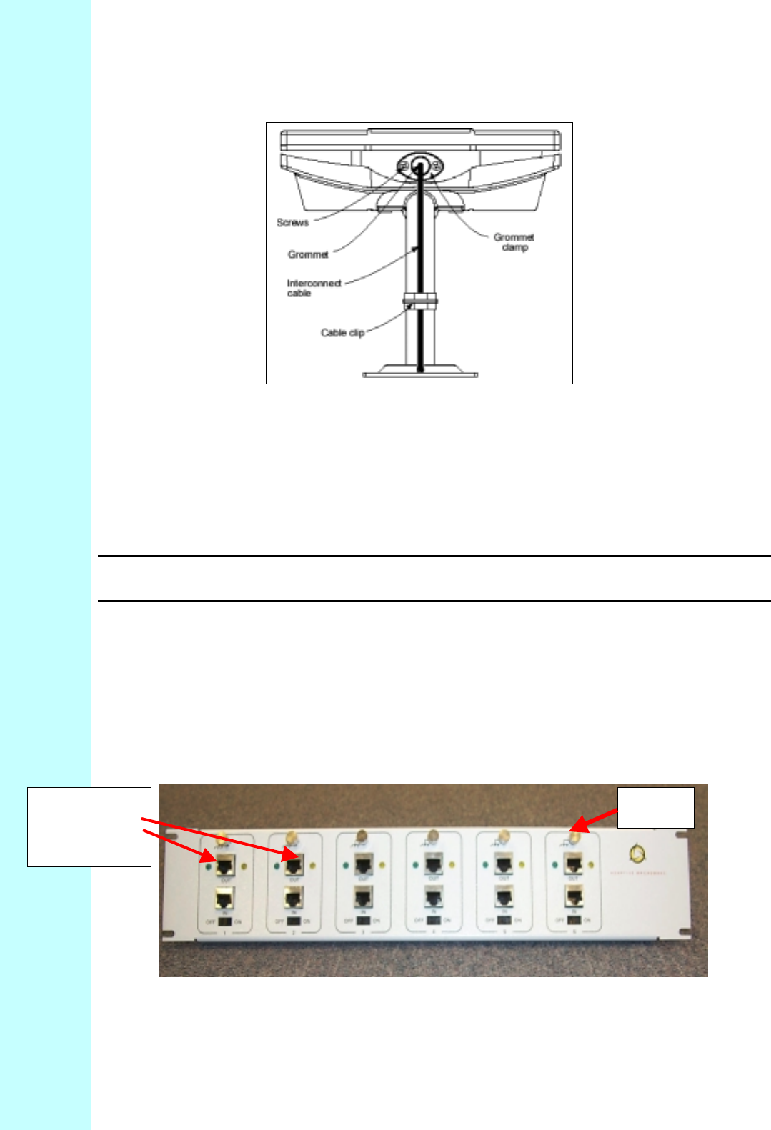 16. Secure the interconnect cable to the mounting pole with the cable clip as shown in