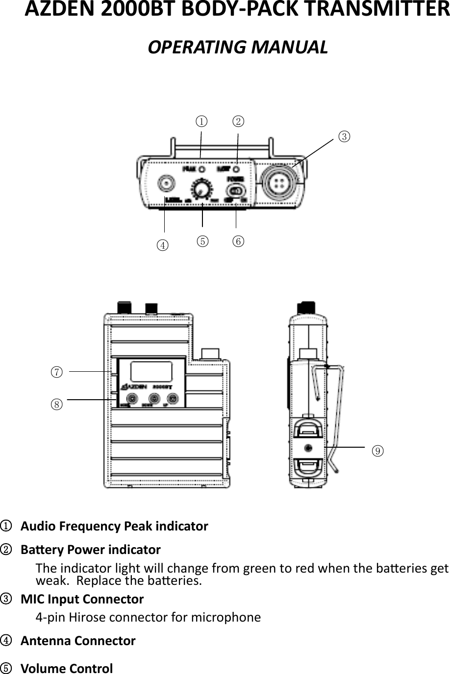Azden 2000BT UHF WIRELESS MICROPHONE User Manual