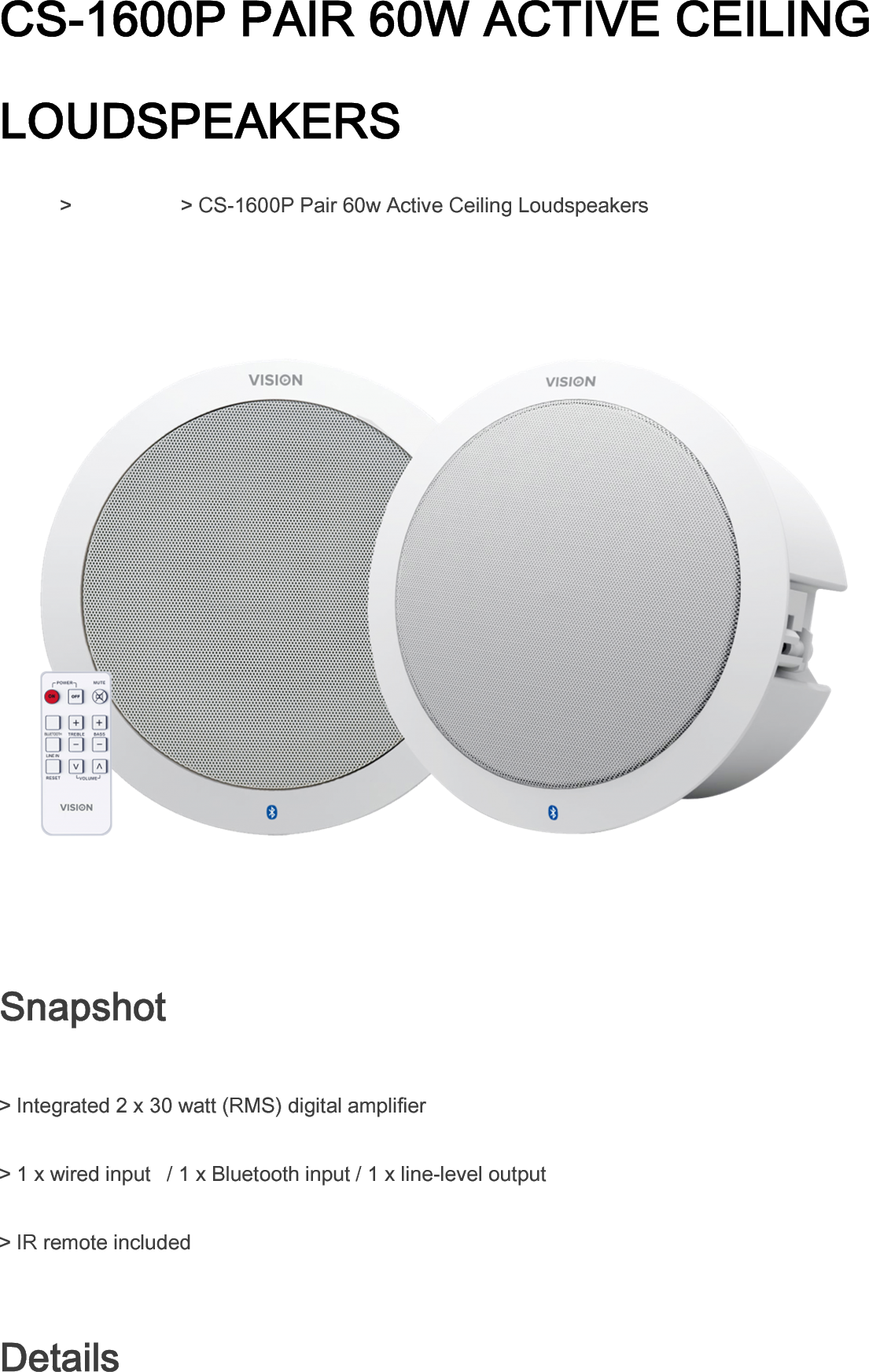 Azlan Logistics CS1600P Pair 60W Active Ceiling Loud Speaker User Manual