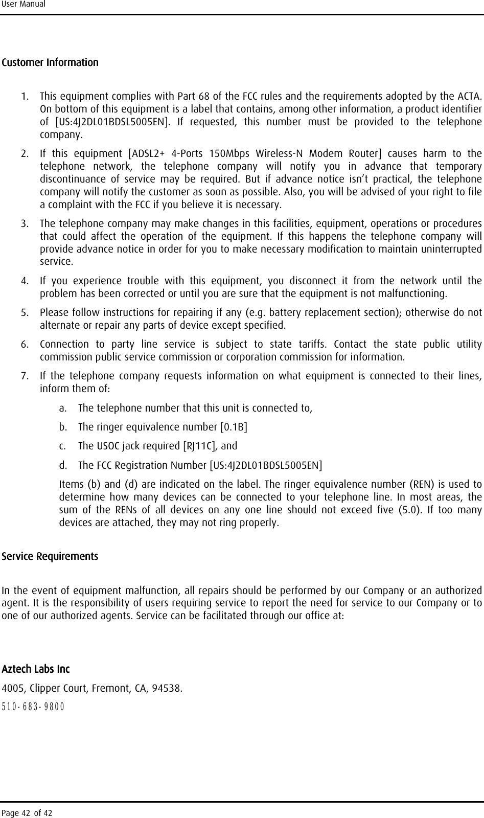 Aztech Technologies DSL5005EN ADSL2+ 4-Ports 150 Mbps Wireless-N Modem Router User Manual DSL5005EN v0 3