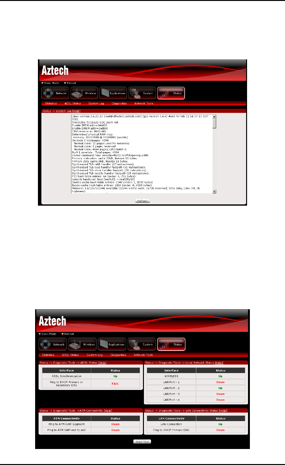 connections on your router. This will include statistics for ADSL, WLAN and your Local Area