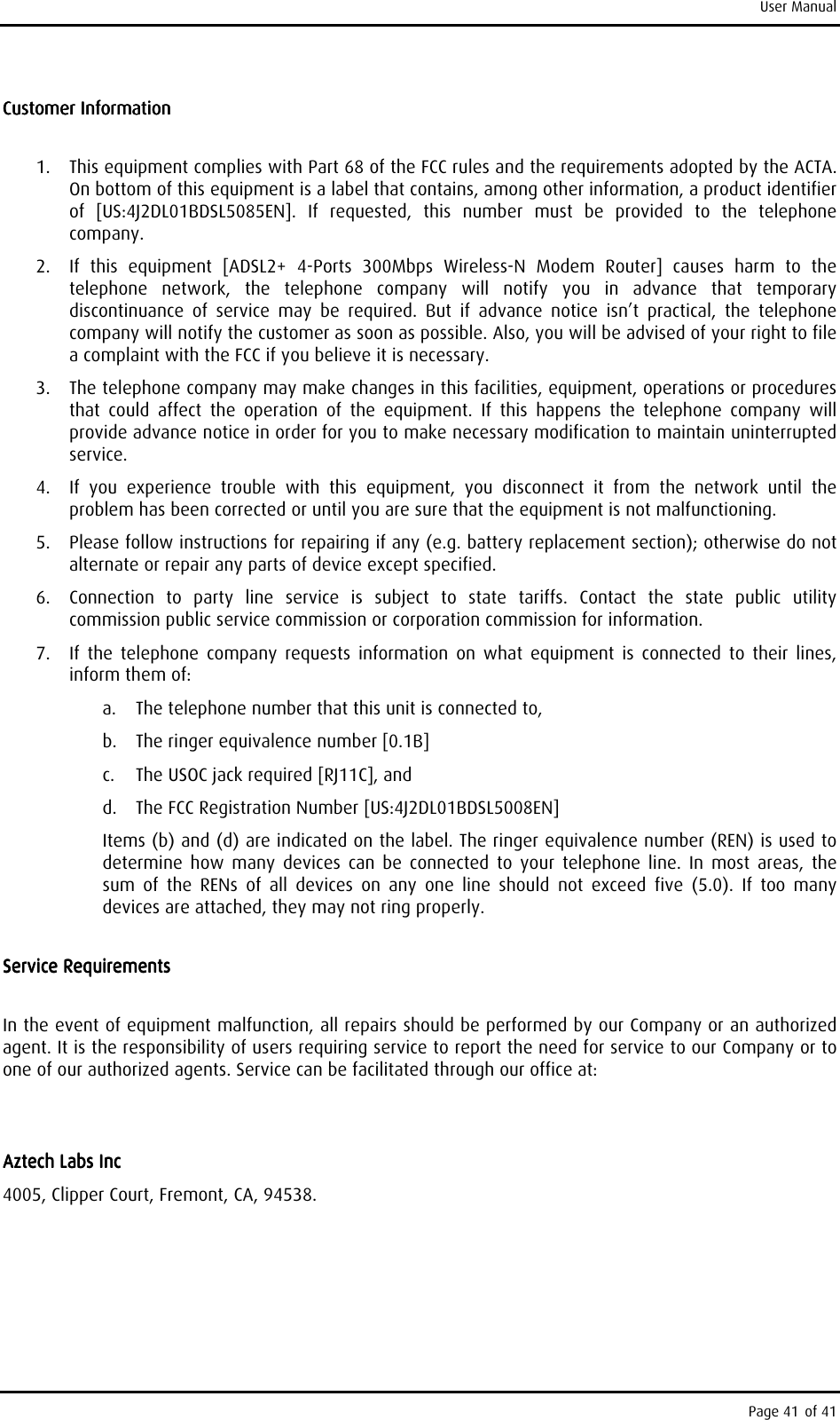 Aztech Technologies Pte Ltd. ADSL2+ 4-Ports 150Mbps Wireless-N Modem Router DSL5008EN v0 1 for Thiha