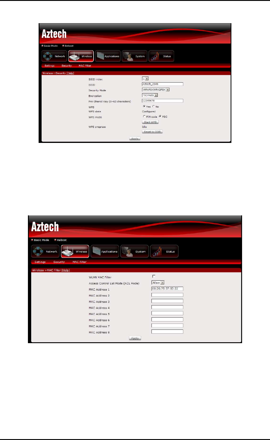 Hardware accelerated AES/WEP/WPA/WPA2 based encryption/MAC Address Filtering for