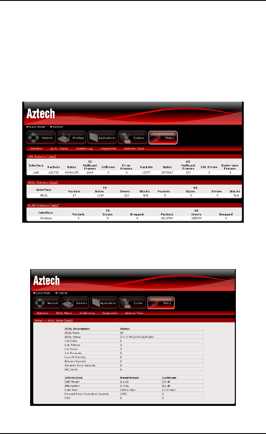 connections on your router. This will include statistics for ADSL, WLAN and your Local Area