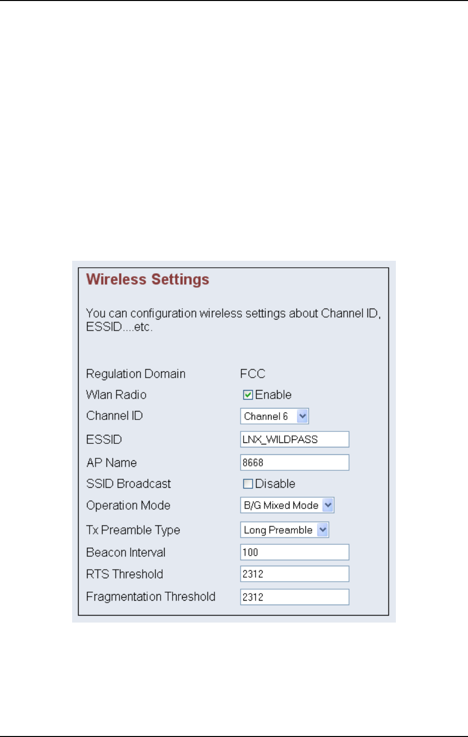 The ESSID is set as “LNX_WILDPASS” by default. It can be changed. ESSID is wireless