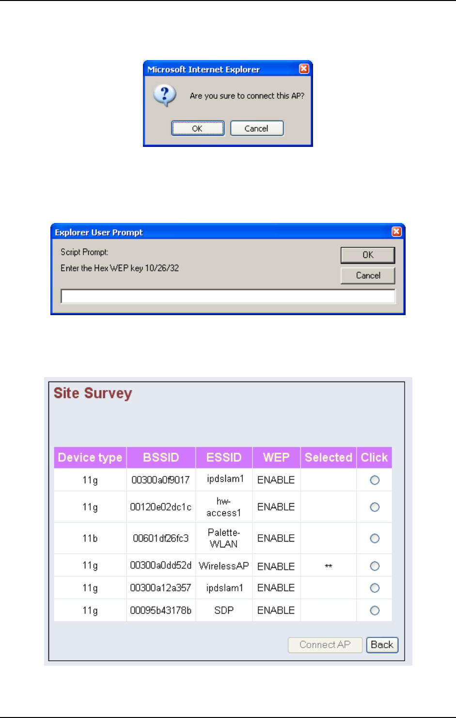 If the wireless access point is WEP enabled, you will be prompted to enter the security WEP in