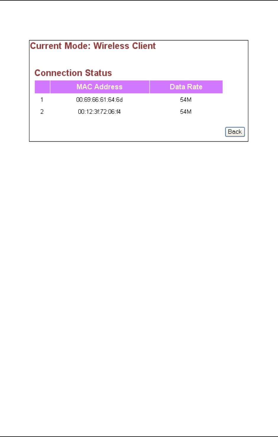 Click on the Show Connection Status and all the MAC address of the wireless clients that are