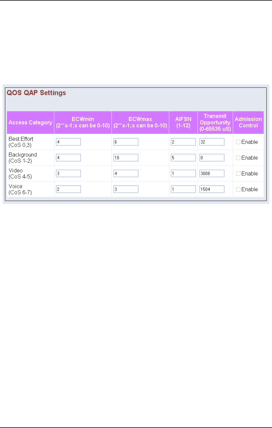 This allows you to change the settings of Best Effort, Background, Video and Voice. All the