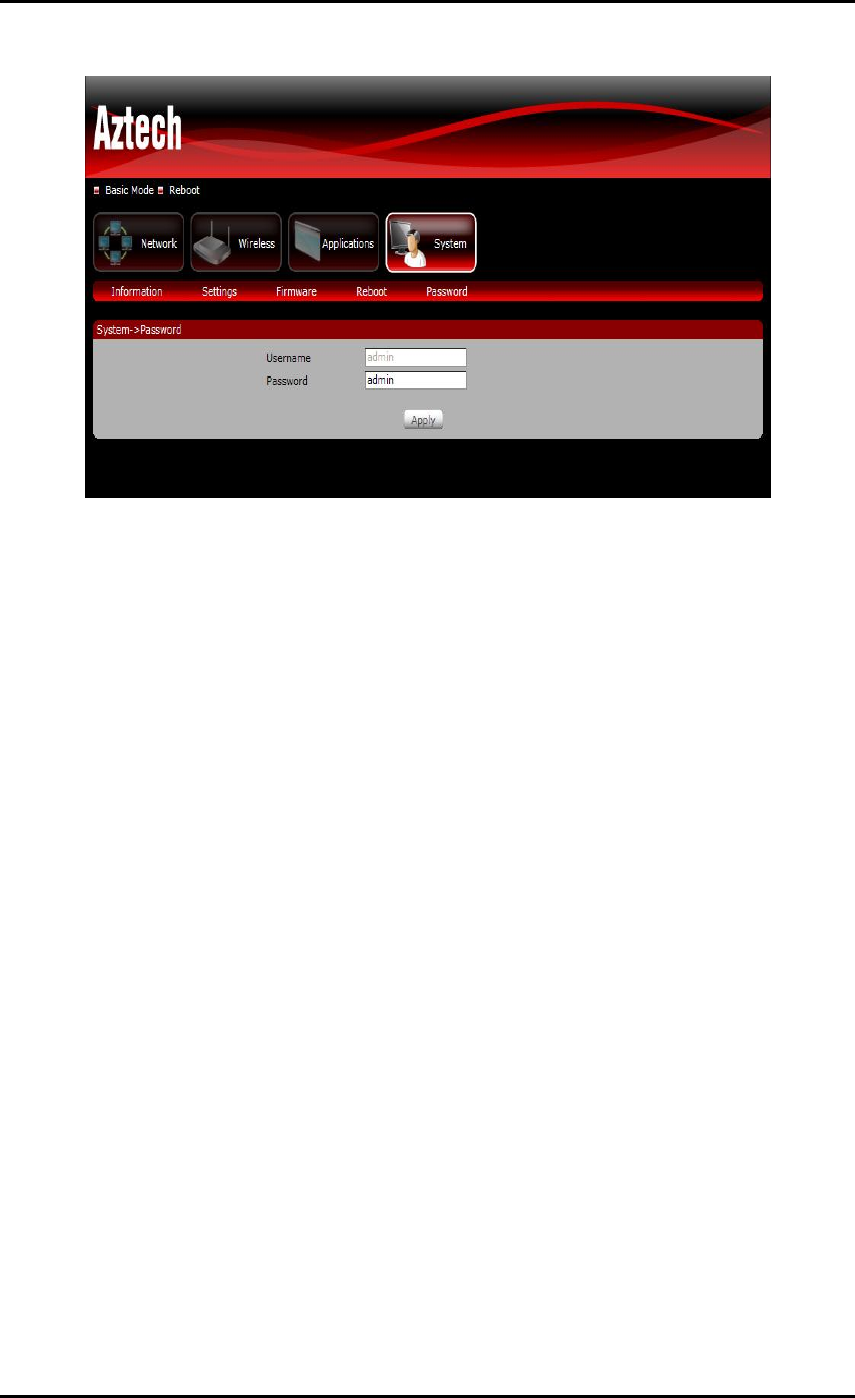 This section allows you to change the default password setting of the router to access the Web GUI.