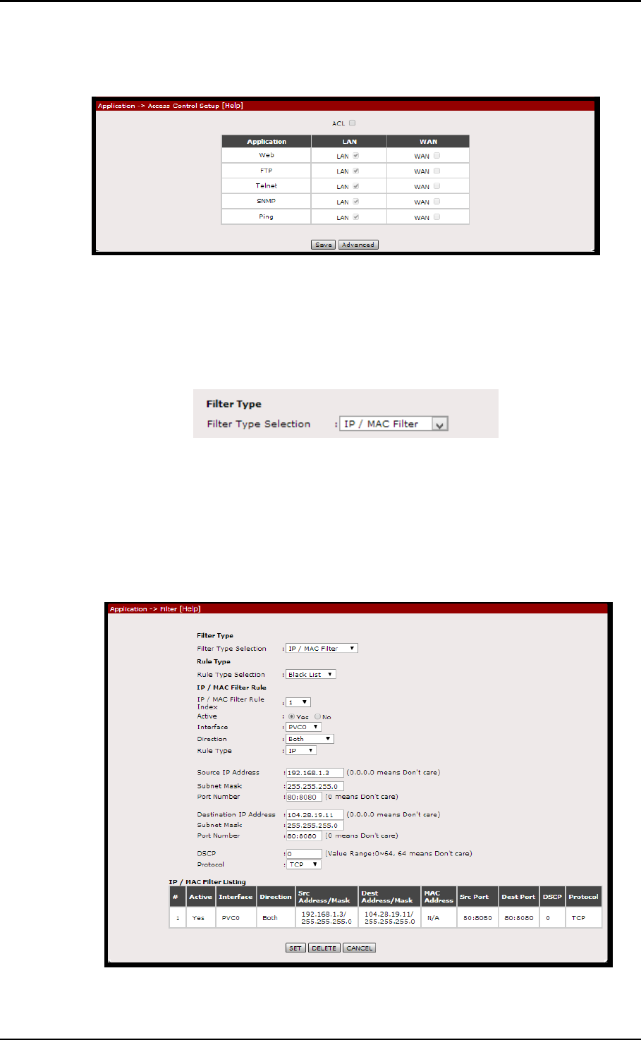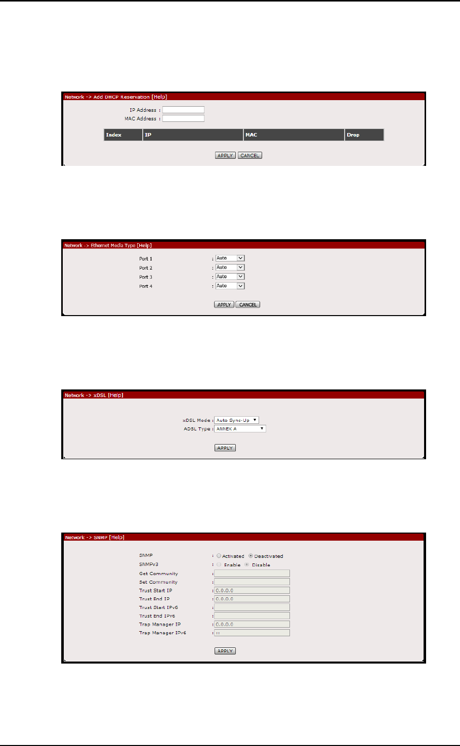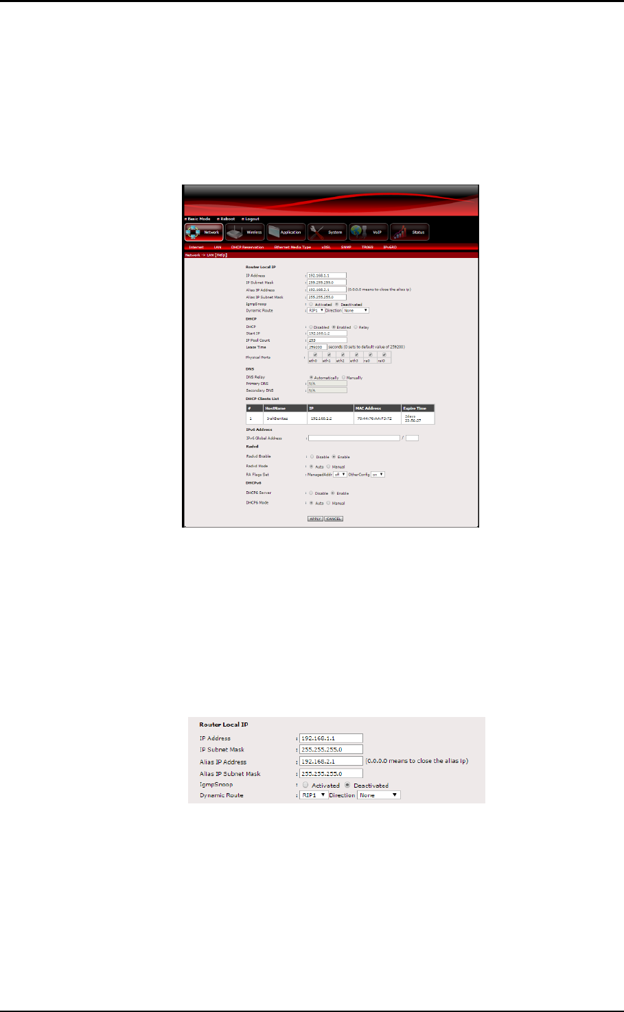 ADSL, LAN, and WLAN. This page also has the following sub menus: