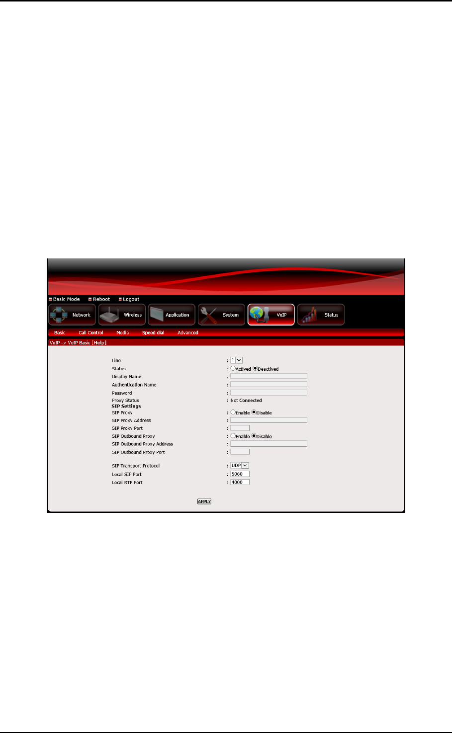 A. Basic. Allows you to configure the basic settings of each SIP Line such
