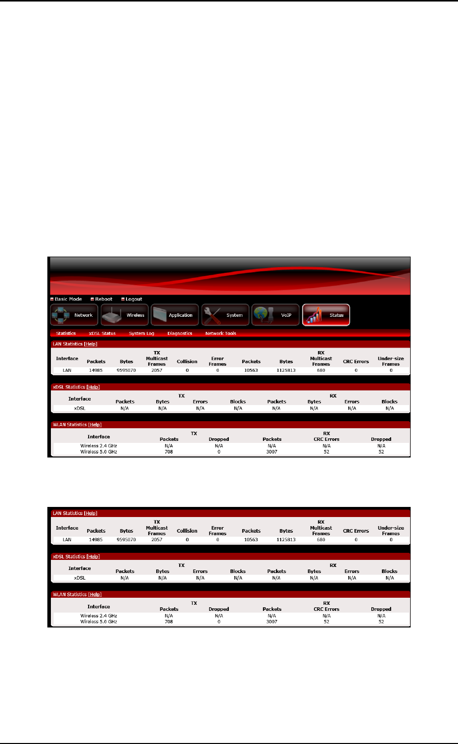 A. Statistics. Provides statistical information of LAN, ADSL and WLAN interface.