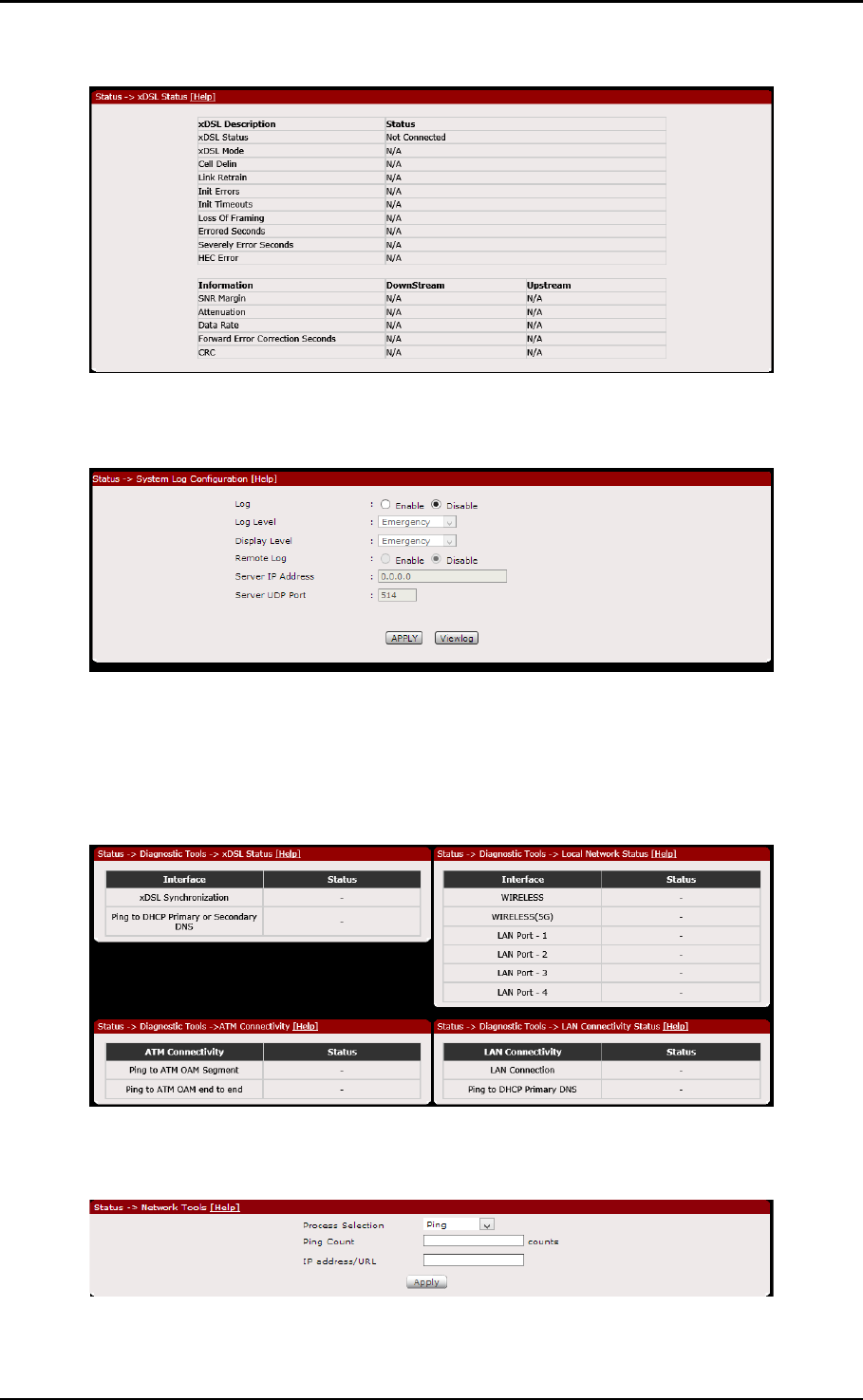 B. xDSL Status. Displays detailed information of the xDSL quality.