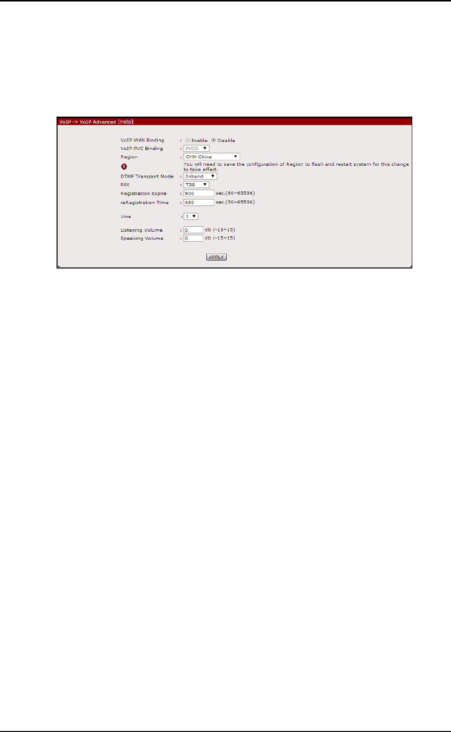 E. Advanced. Allows you to enable WAN binding, adjust call volumes for