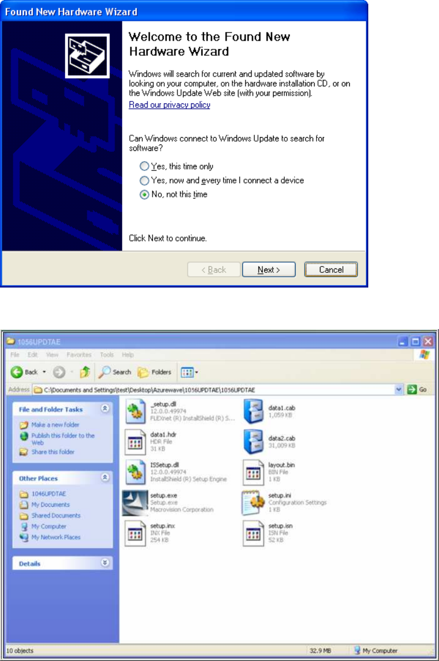 AW-NE106 after the system boots up and displays a “Found New Hardware Wizard” window.