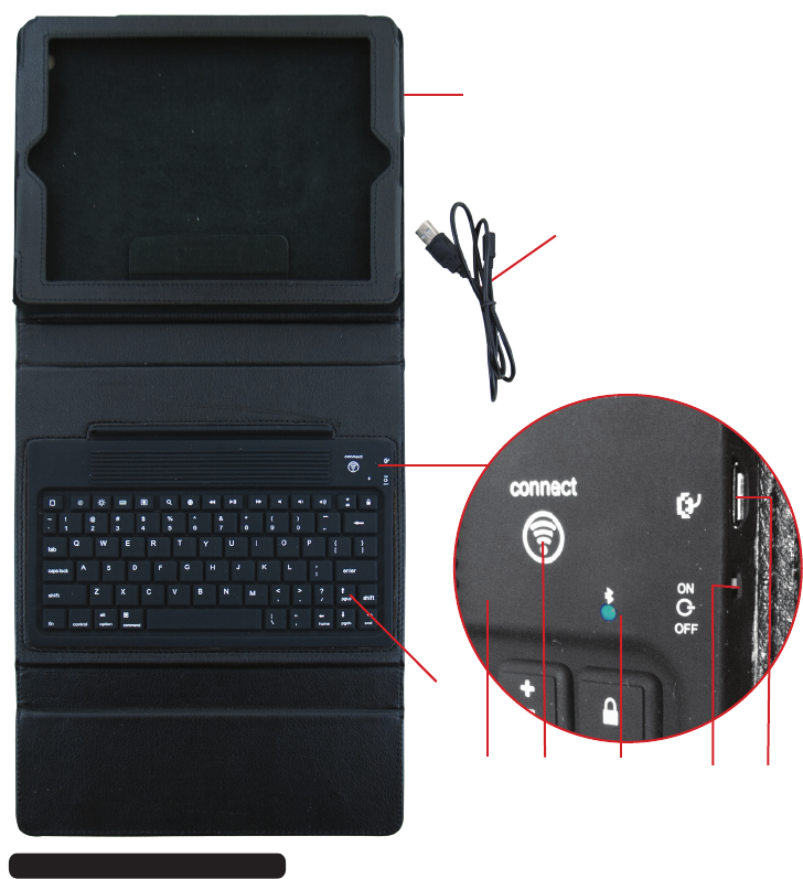 The Bluetooth Keyboard can be connected to iPad 2, 3, 4 iPhone 3G, 3GS, 4, 4S, 5