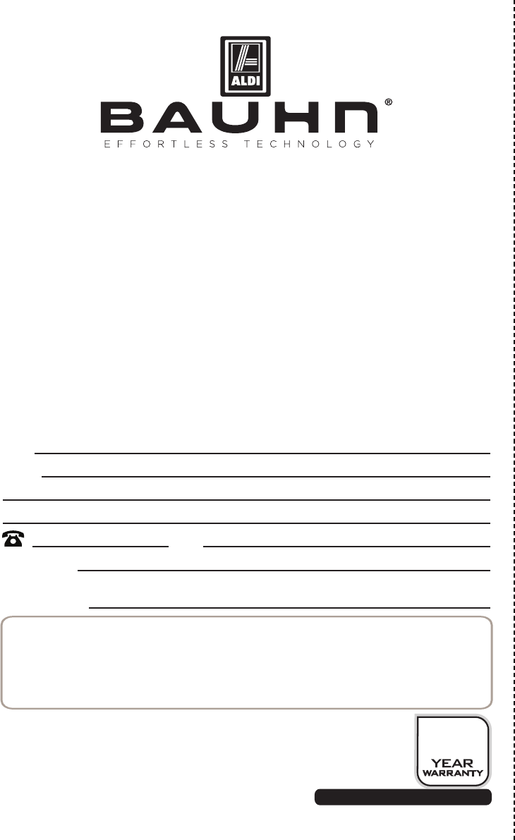 ALDI’s stringent quality specifications. Please complete the warranty section below and