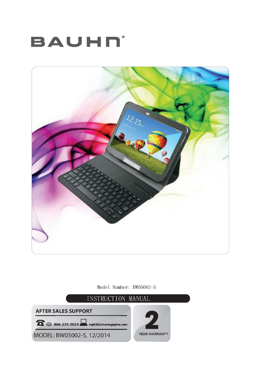 B and W Electronics Development 14BW05002 Bluetooth Keyboard Case User Manual