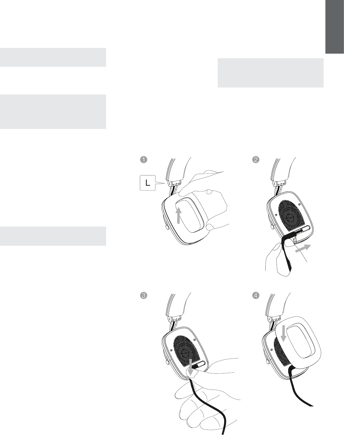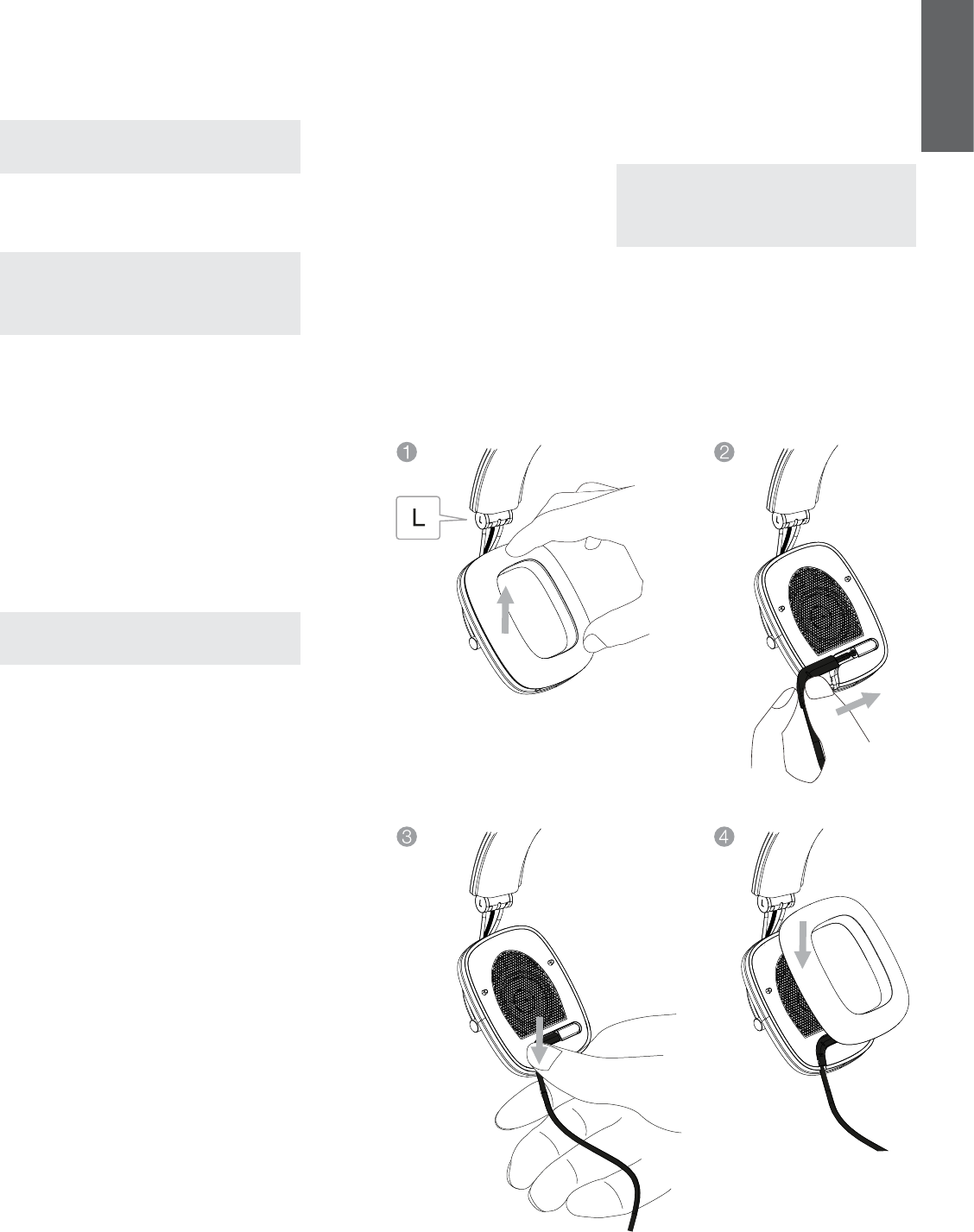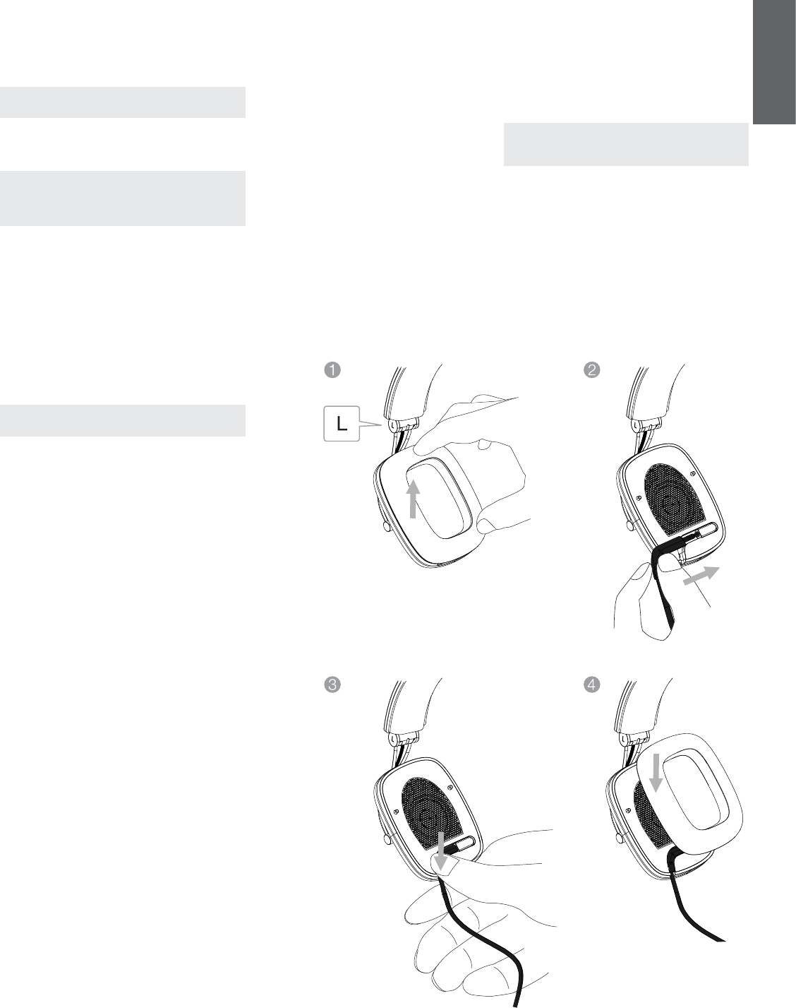 左 のイヤ ーパッドを 引っ張りヘッドフォン 本 体 から 慎 重