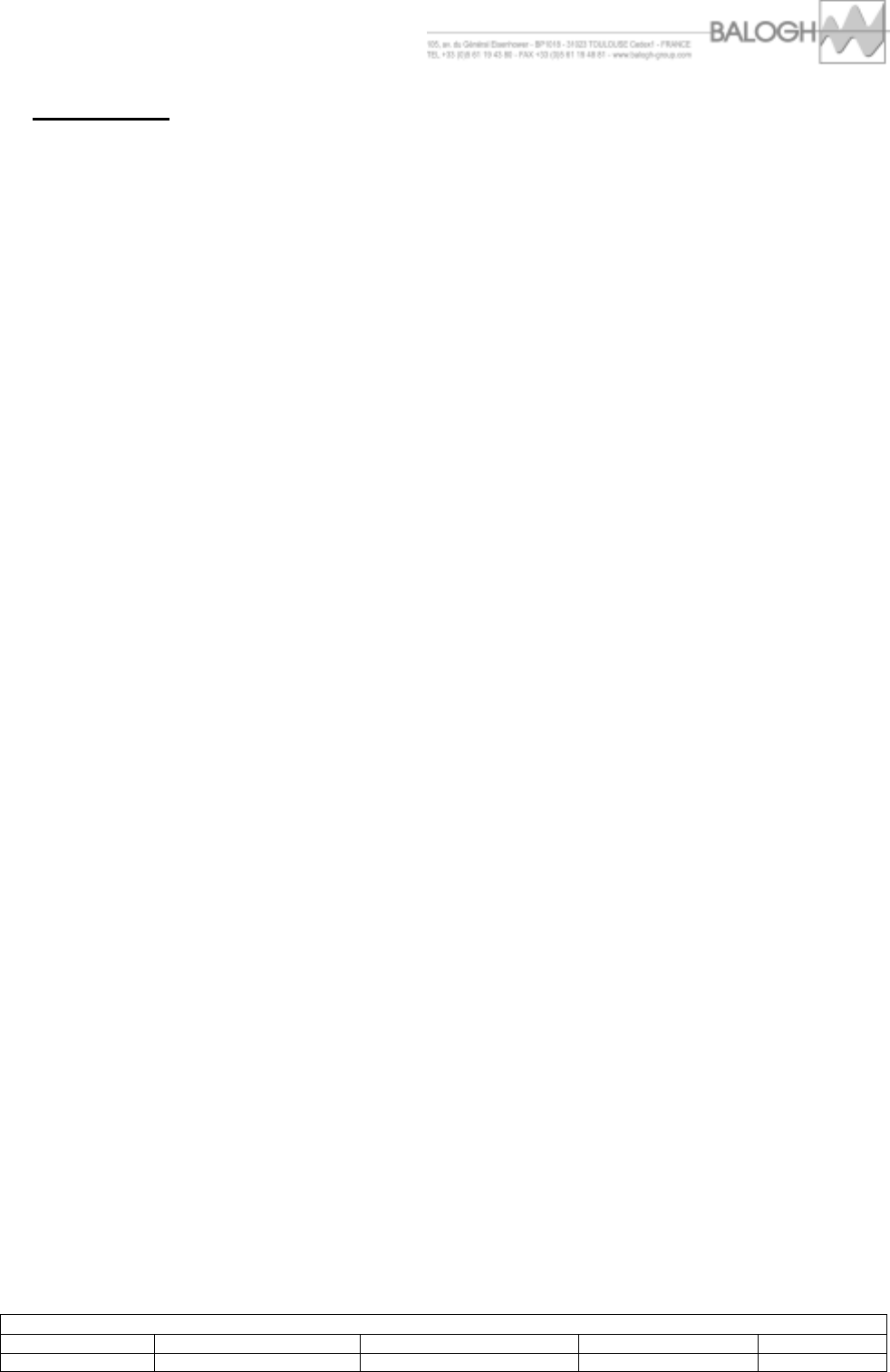 CE DOCUMENT EST LA PROPRIÉTÉ DE BALOGH IL NE PEUT ETRE COMMUNIQUÉ À DES TIERS SANS AUTORISATION ECRTITE PRÉALABLE.