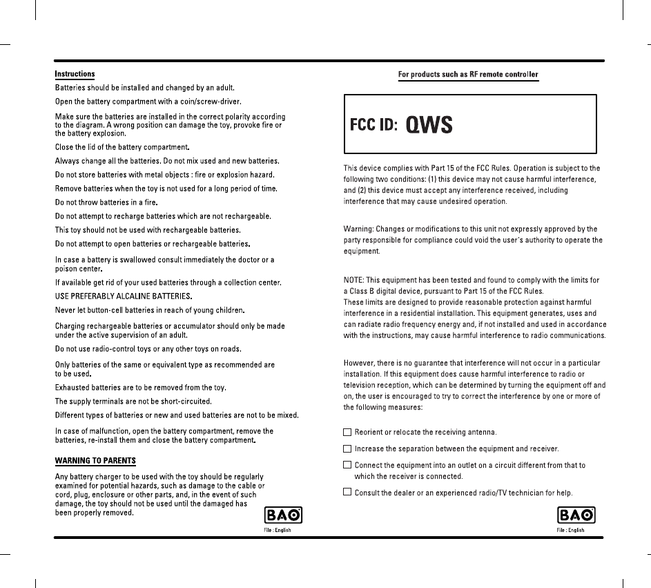 BAO Ltd. RC Toy battery instructon FCC