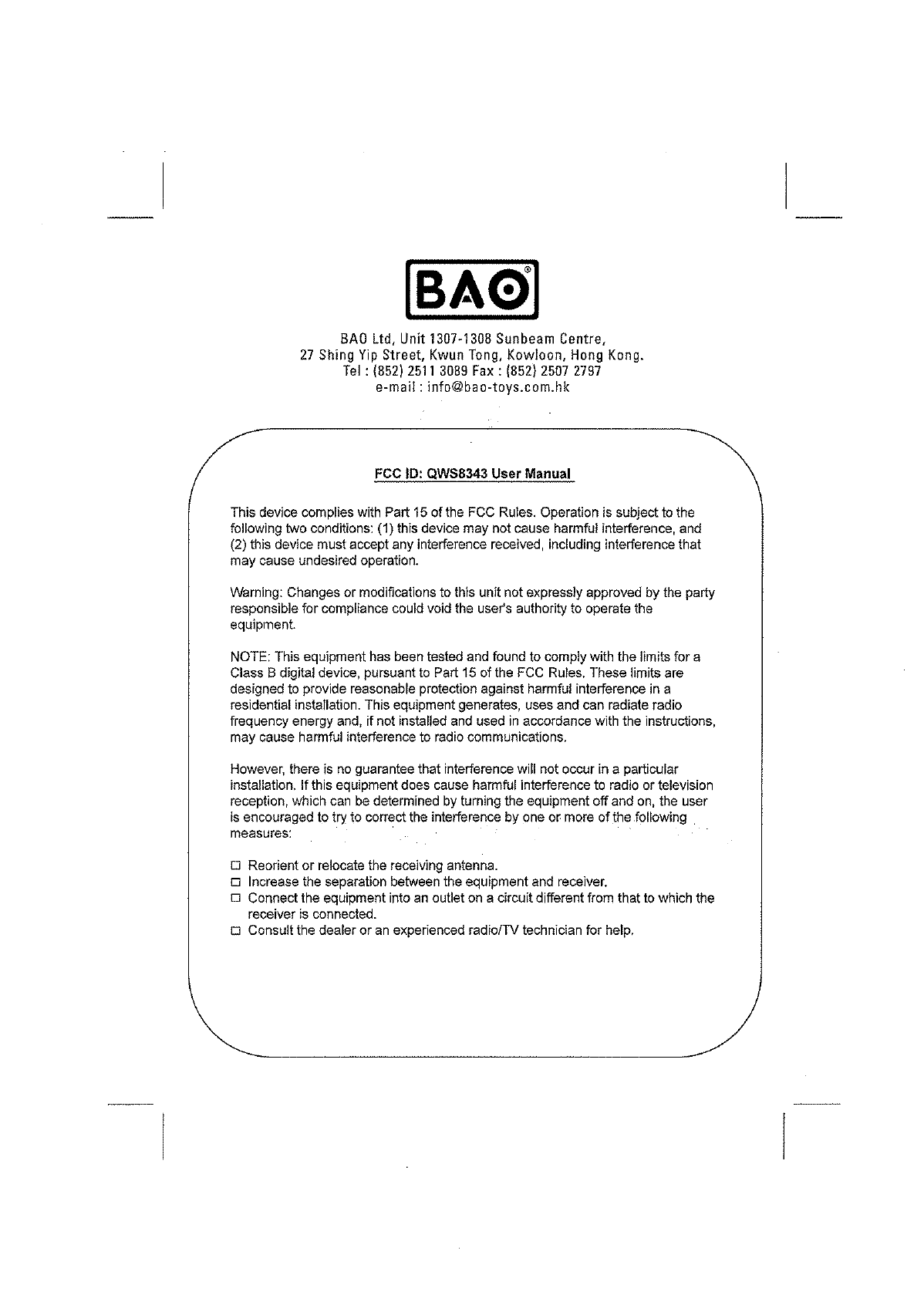 BAO 8343 RC Car User Manual