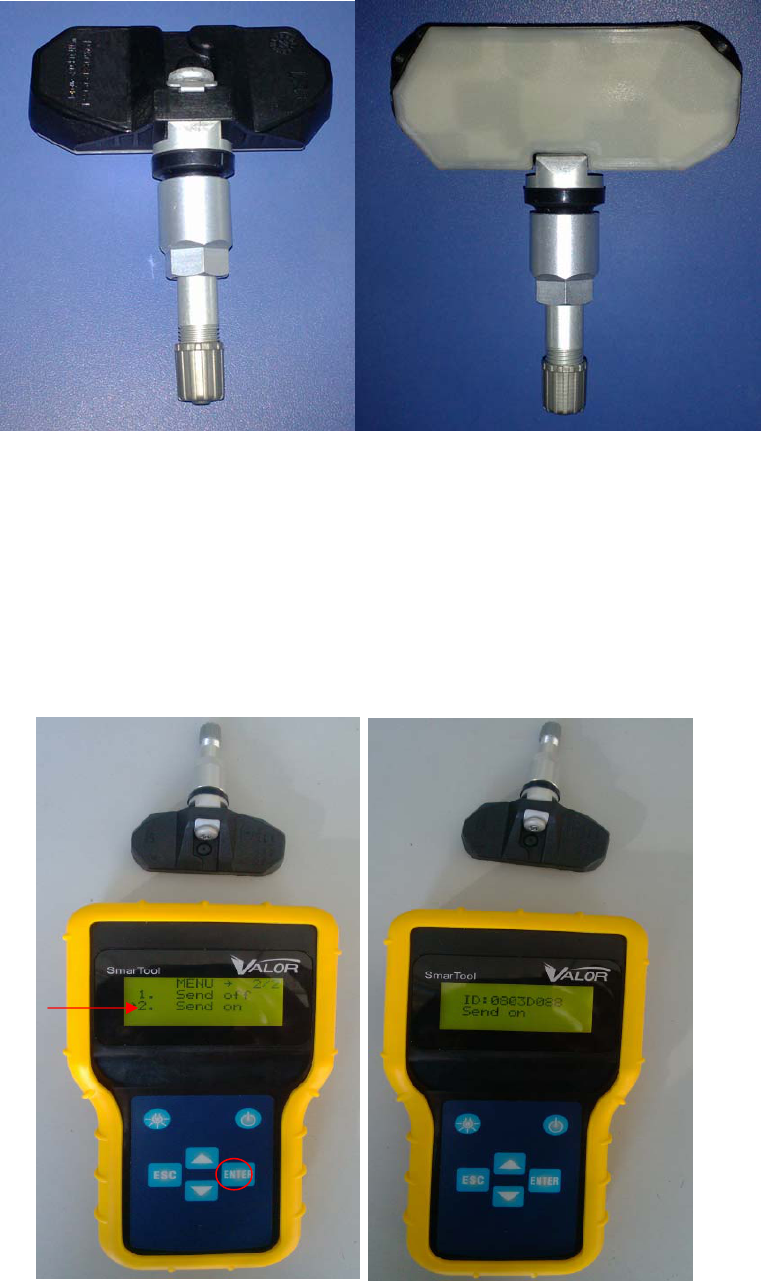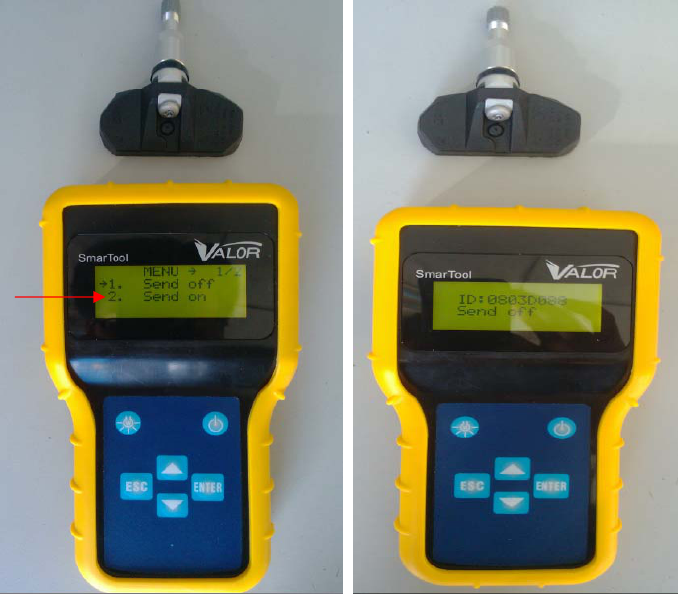 b)、Turn on the tool and press the “UP” and “DOWN” key to chose “2.Send on(Arrow