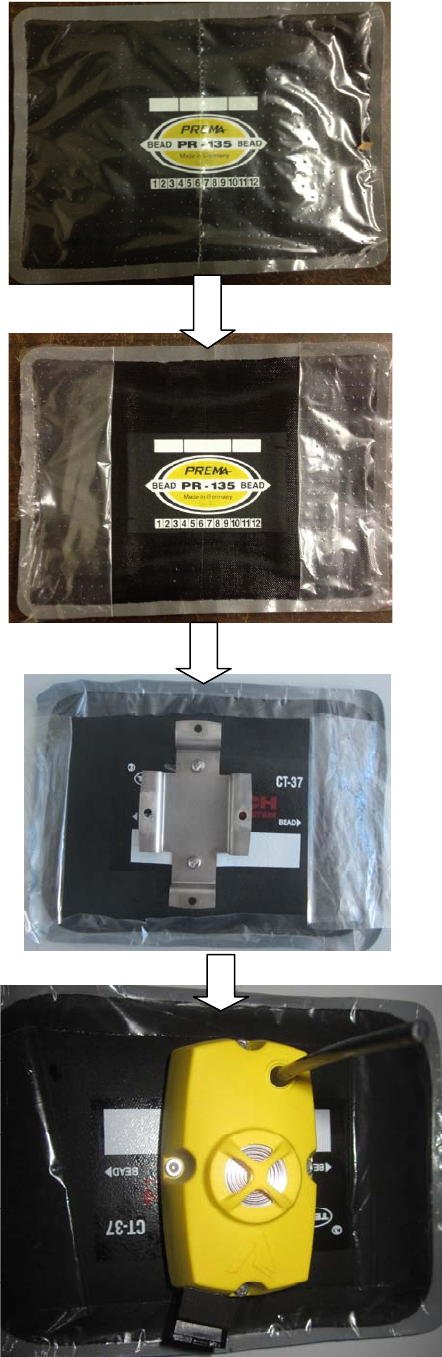 Take the rubber cover of the tire and then attach the sensor (shown as in the following