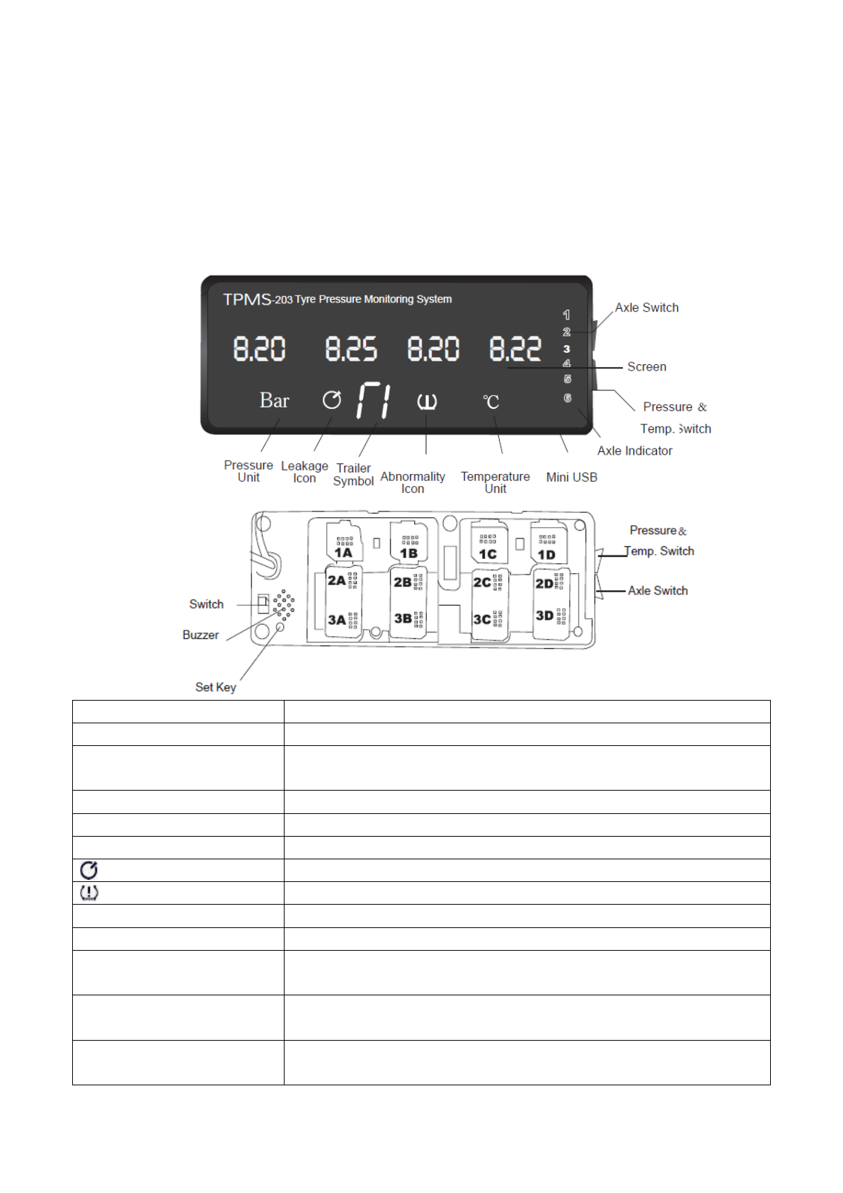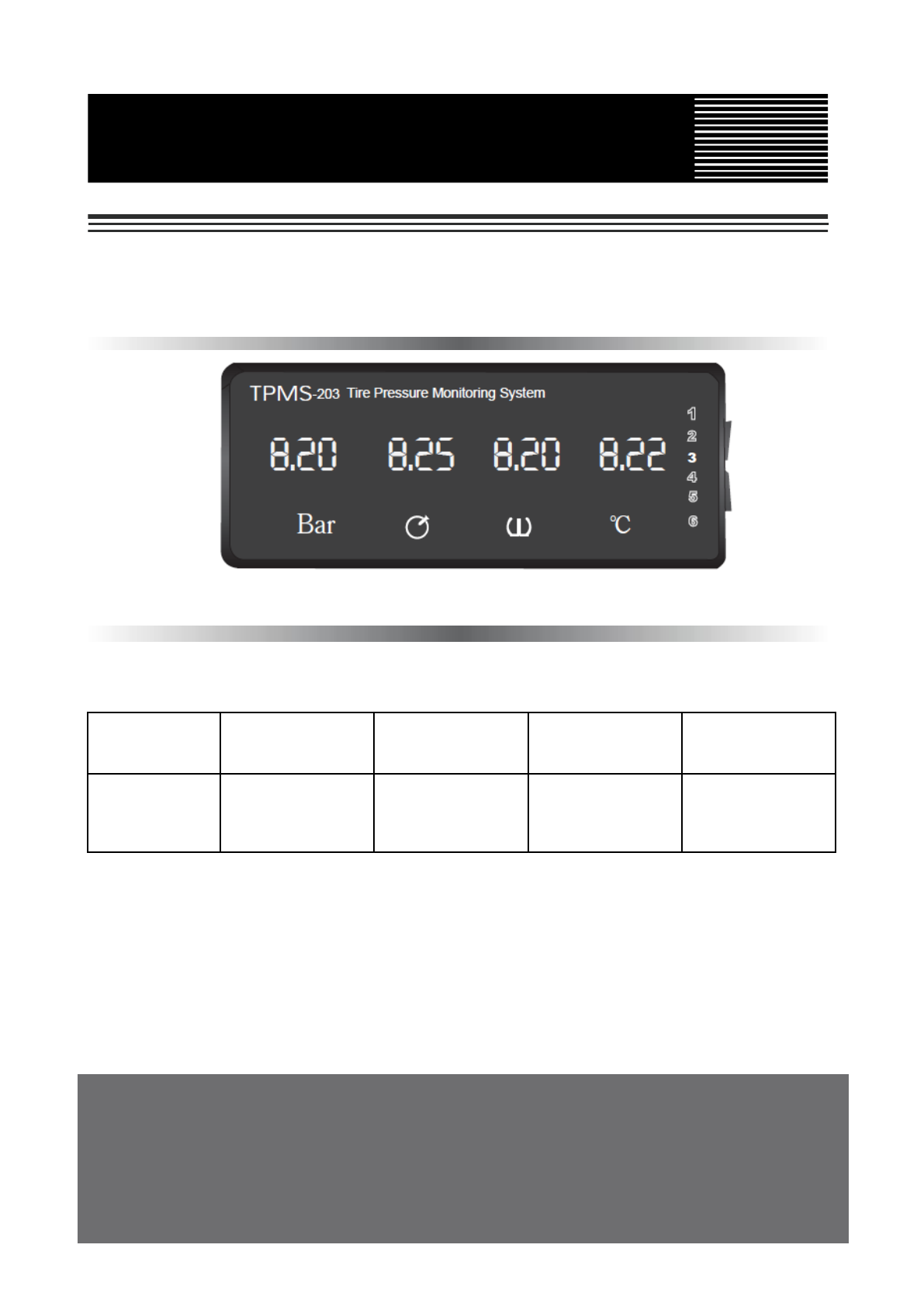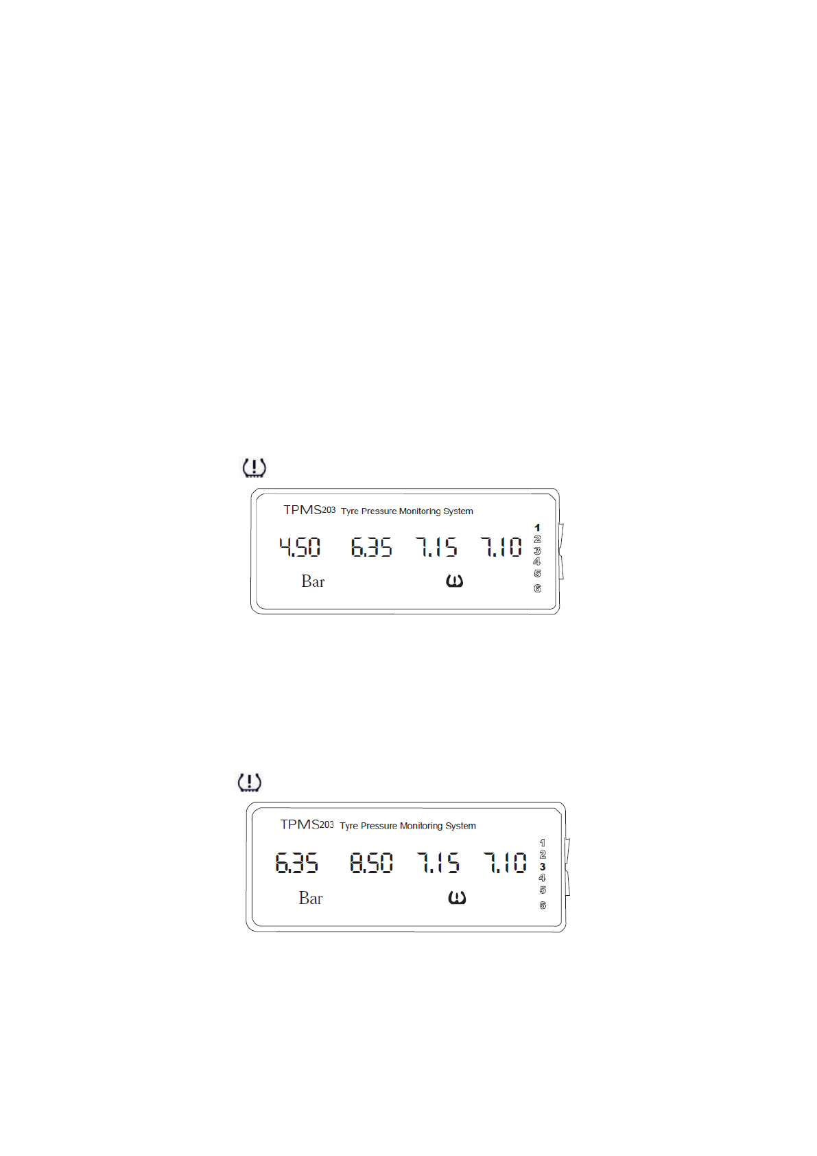 ▲TPMS-203 is designed to monitor tyre pressure and temperature. It is not designed to