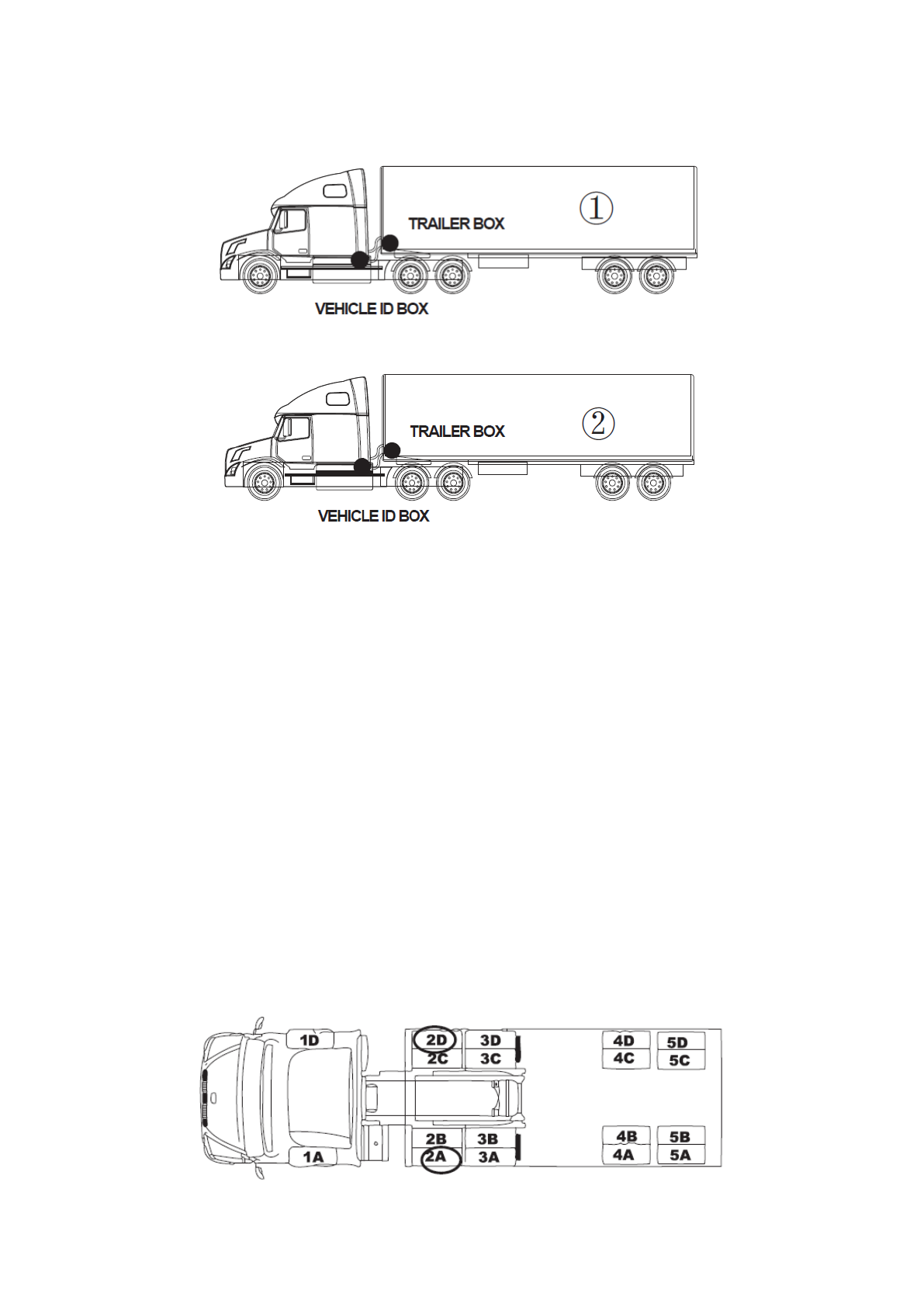 No vehicle ID box and trailer box are provided for buses or straight trucks, so you