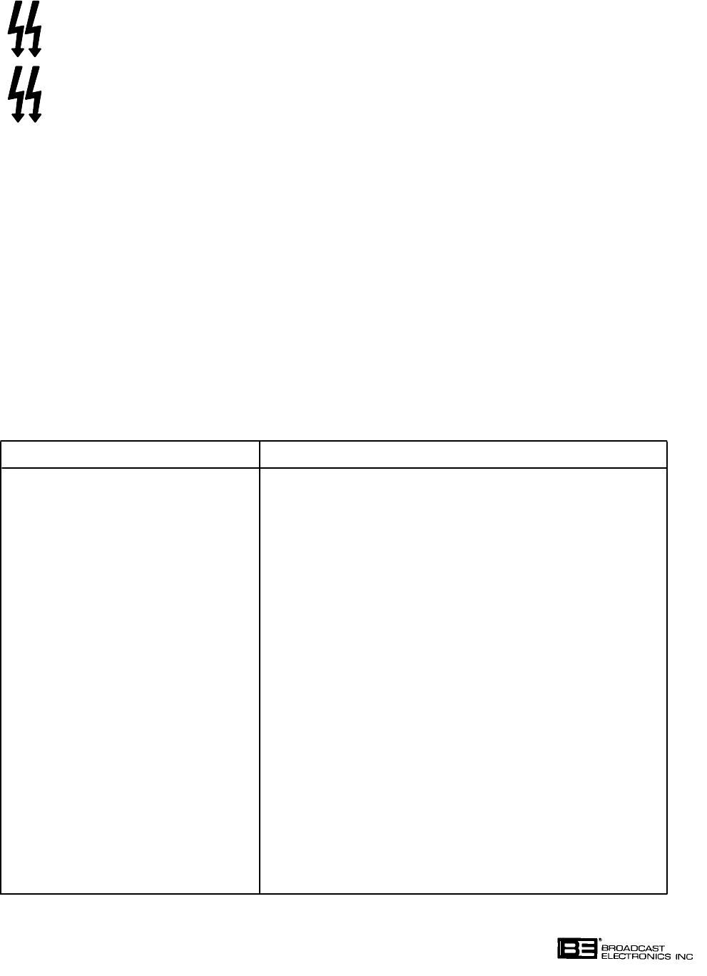 BEI Electronics, LLC AM-2.5E, 2.5 KW AM Stereo Transmitter WARNINGS