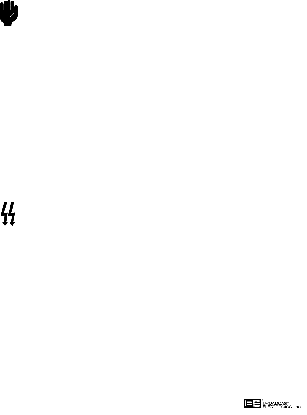 The Broadcast Electronics AM transmitters contain high voltages and currents. If safety precautions are