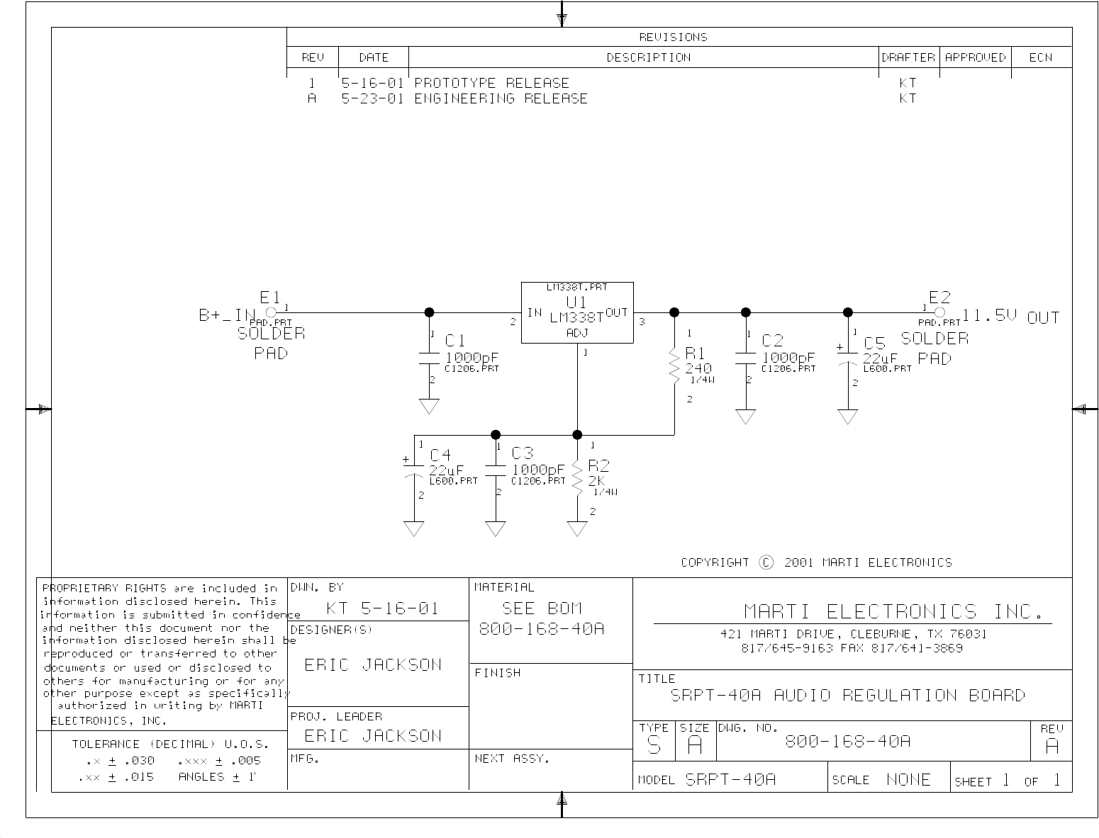 language, natural or computer, in any form or by any means, without the prior written permission of Marti Electronics.