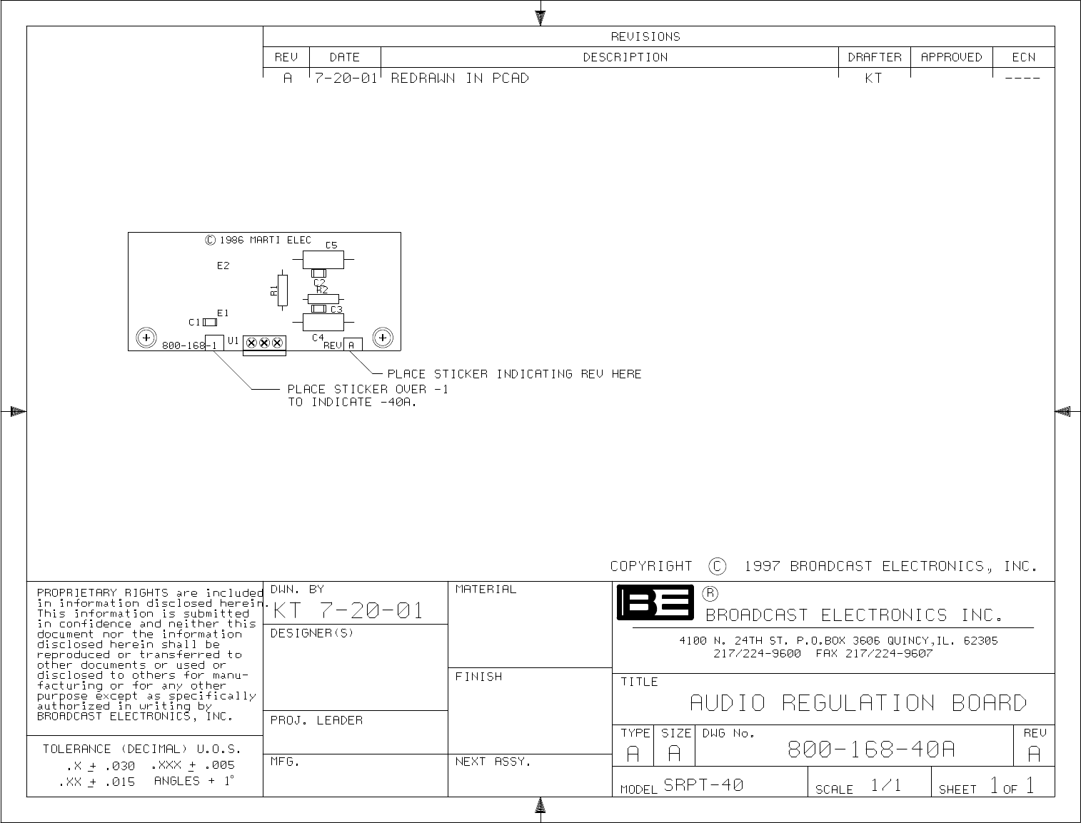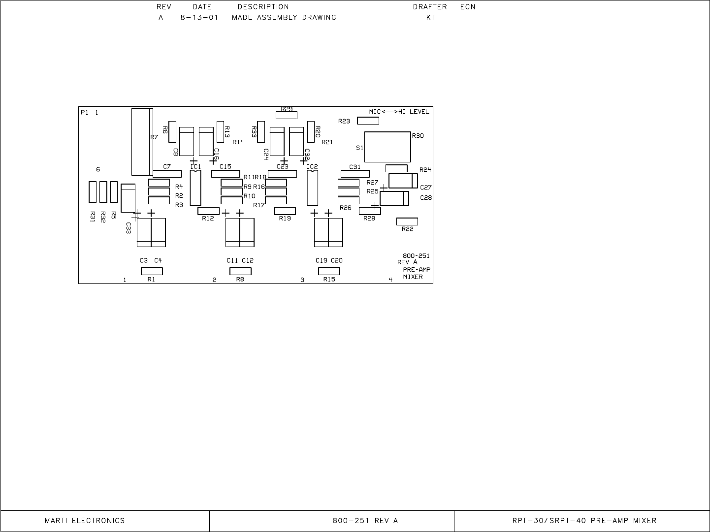 PC Board, Audio RPT-2/15/30 REV-9526 800-166B 1