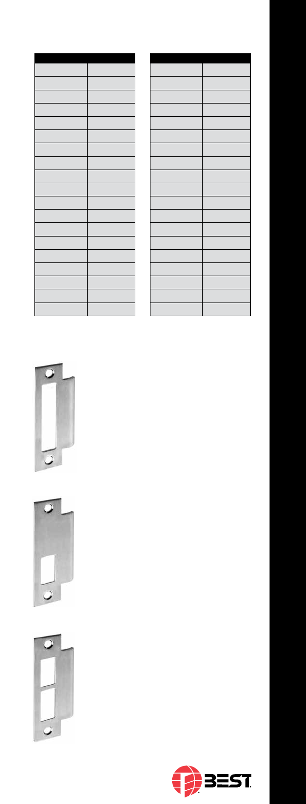 Special cylinder vari a tions are avail able for most ap pli ca tions. Stanley/Best cyl in ders