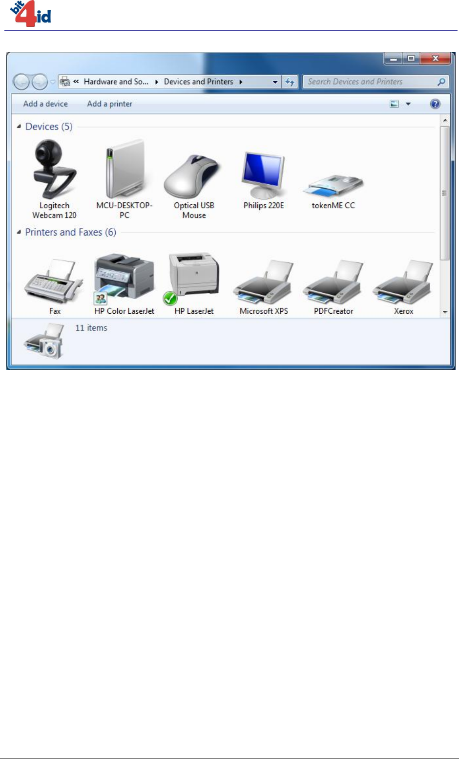 “Start>Devices and Printers”. In this window two icons will be shown: Smart Card and