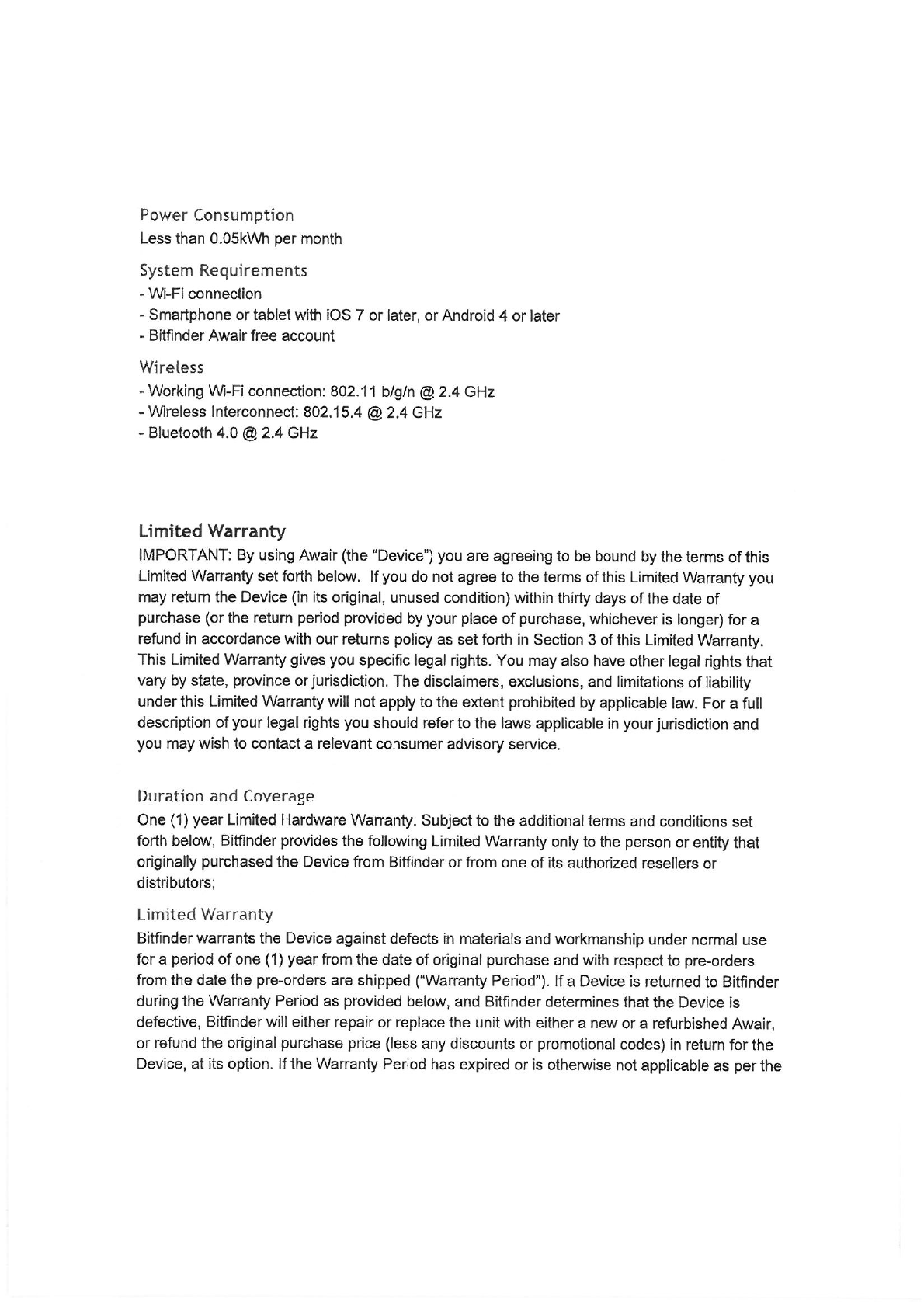BITFINDER AWAIR0HD1 Air Quality Monitor User Manual