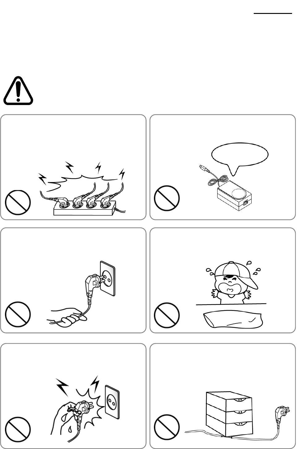 • If the plug is wet or dirty, dry or wipe it before usage.