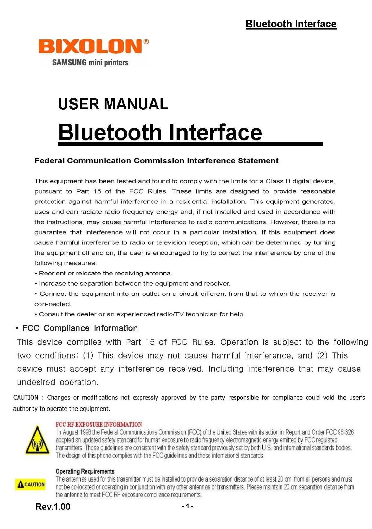 BIXOLON Co.,Ltd. Bluetooth Interface IF BT User Menual