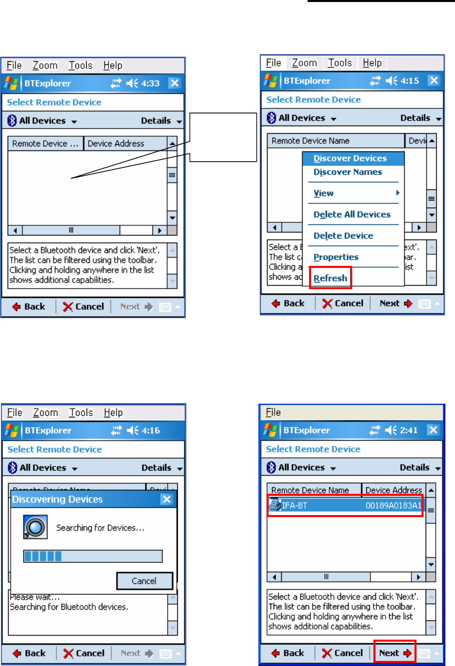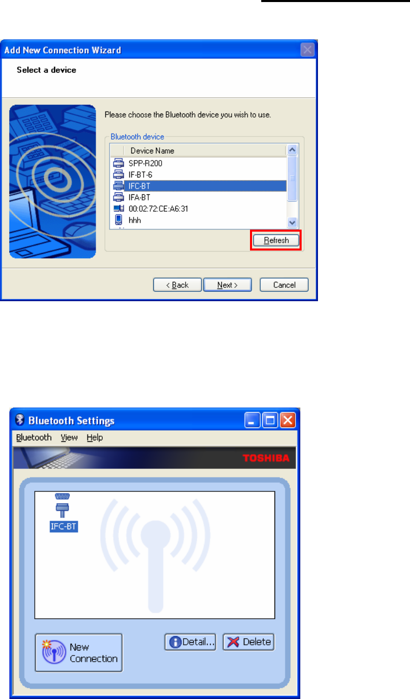 7) Click “Refresh”. 8) Click the IFX-BT from the Bluetooth
