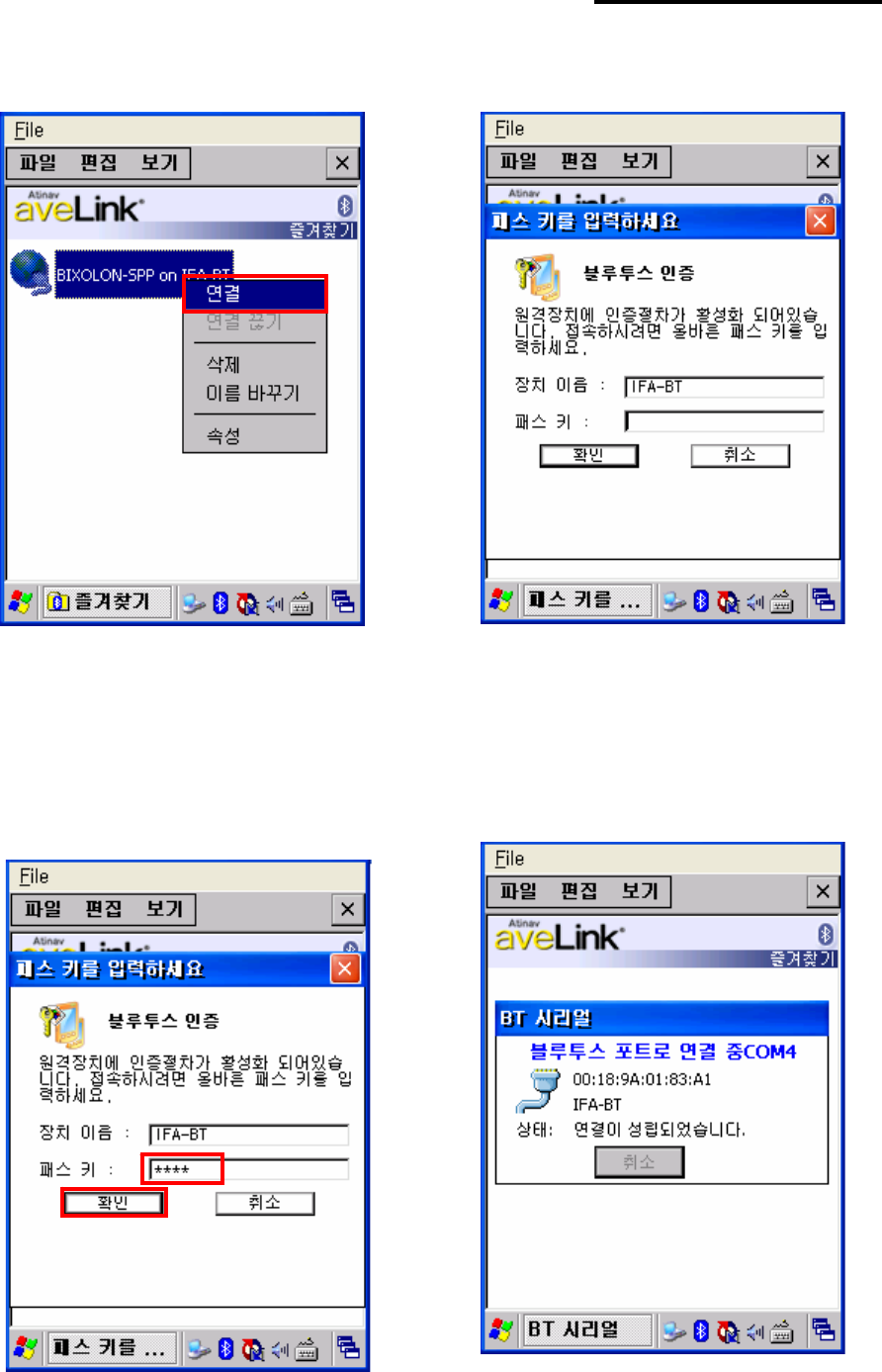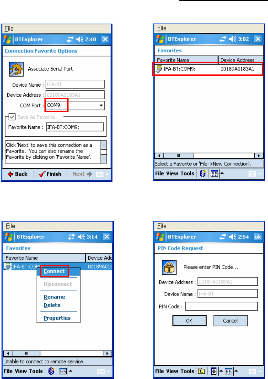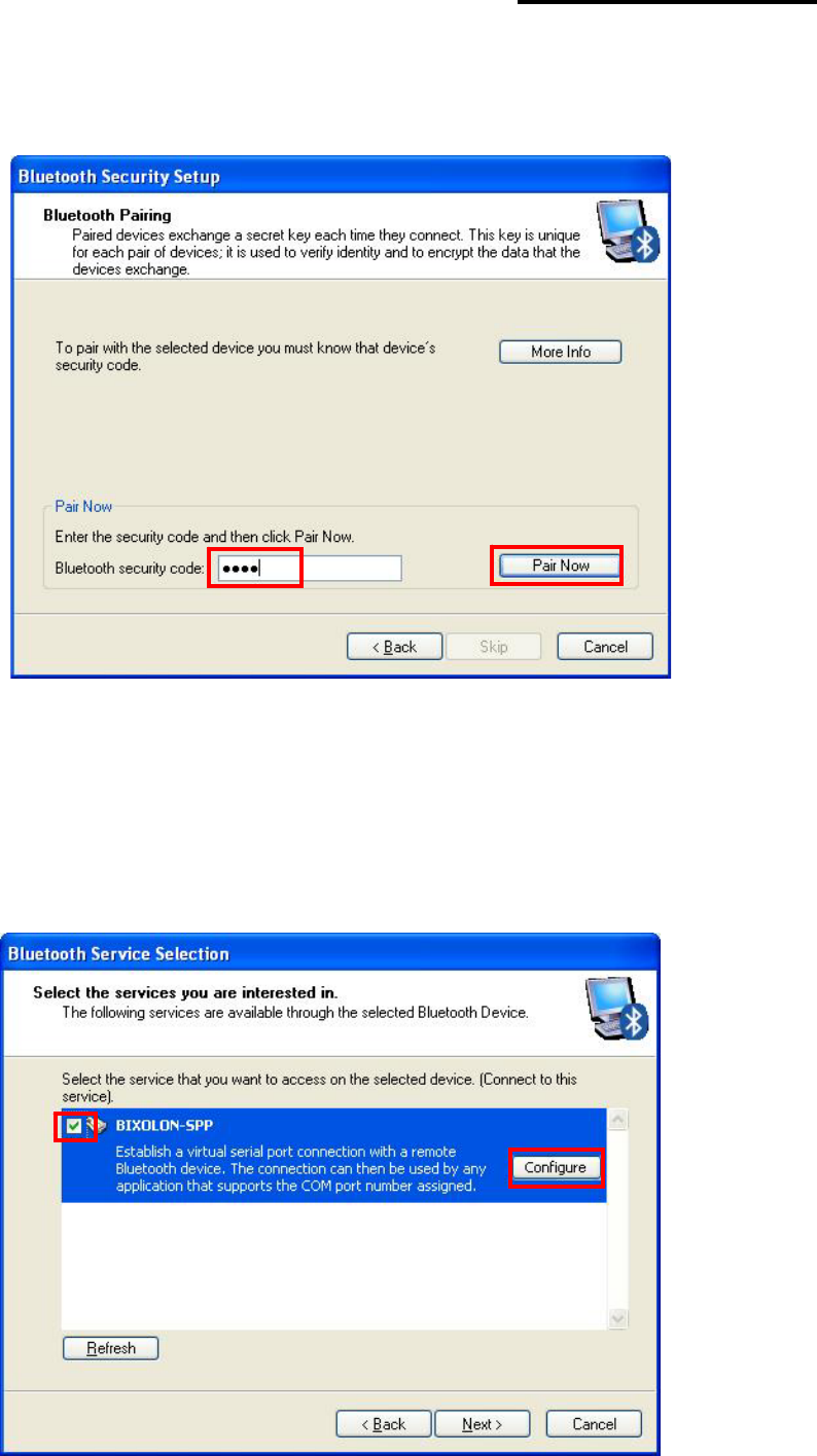 9) Select BIXOLON-SPP and click “Next”. 10) Check favorite and Click “Connect”.