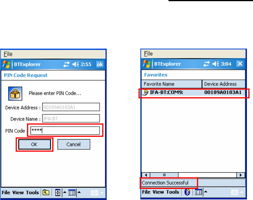 IFX-BT and the PC are connected.