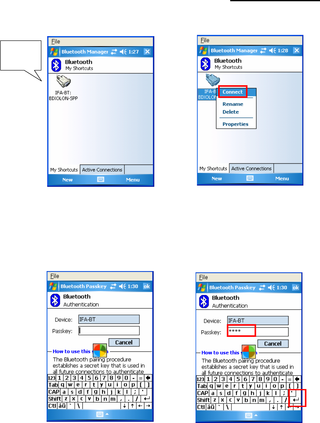 13) Click “Connect”. 14) The Pass Key window appears (if the