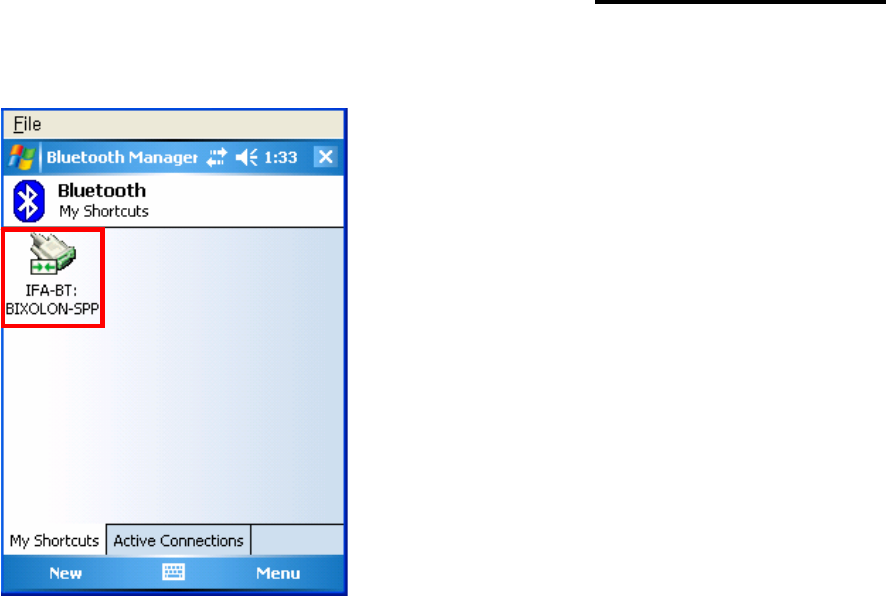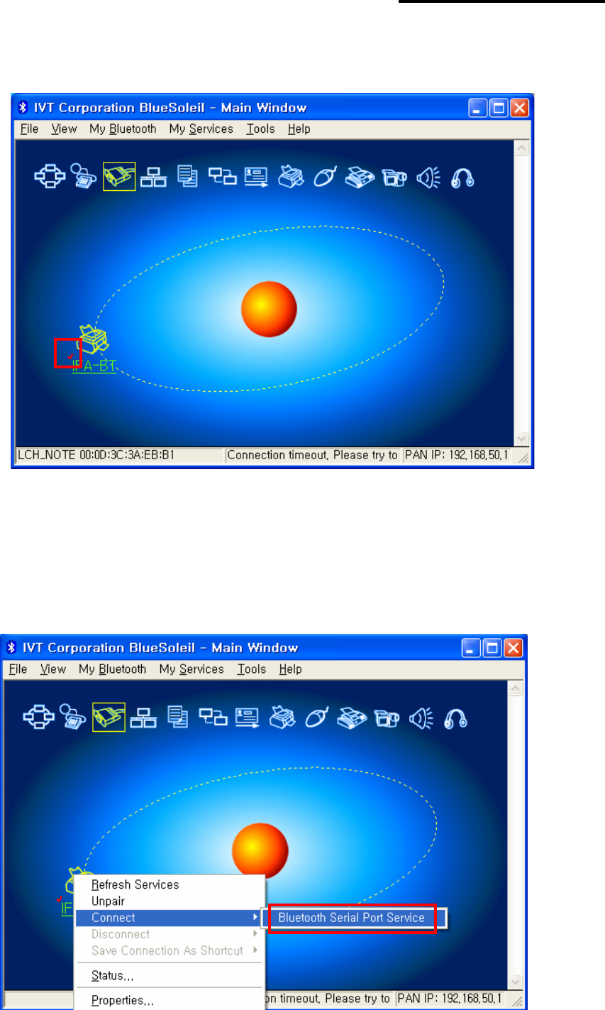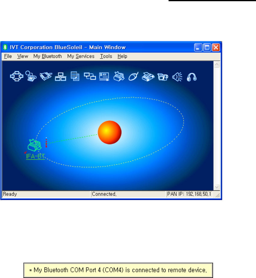 8) Click right button of the mouse above the "IFA-BT Icon" and select the "“Connect”.