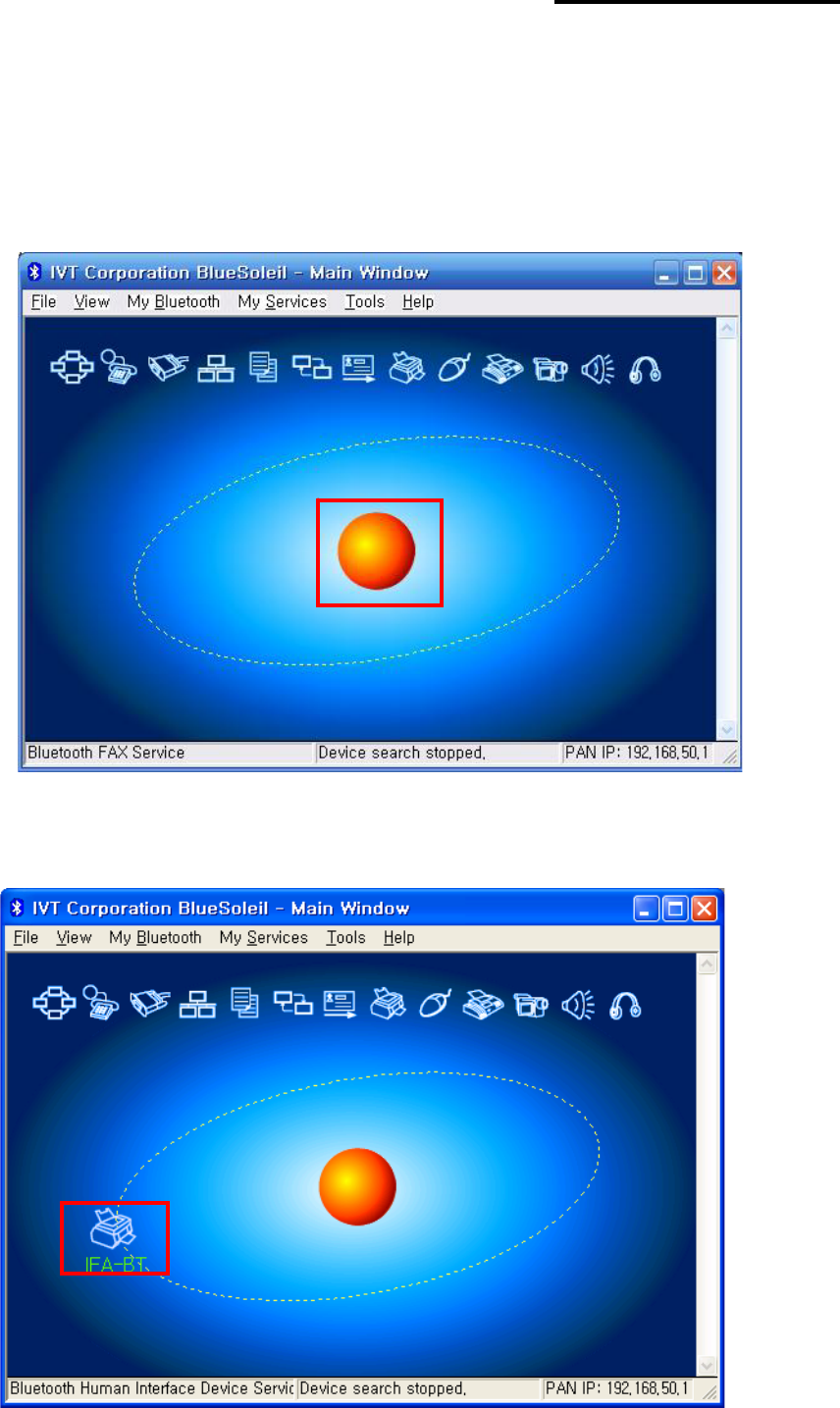 4) Click the red sphere at the center of the Bluesoleil main screen.