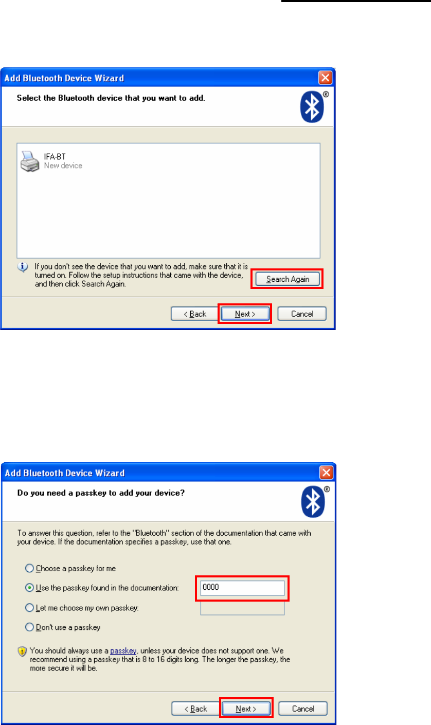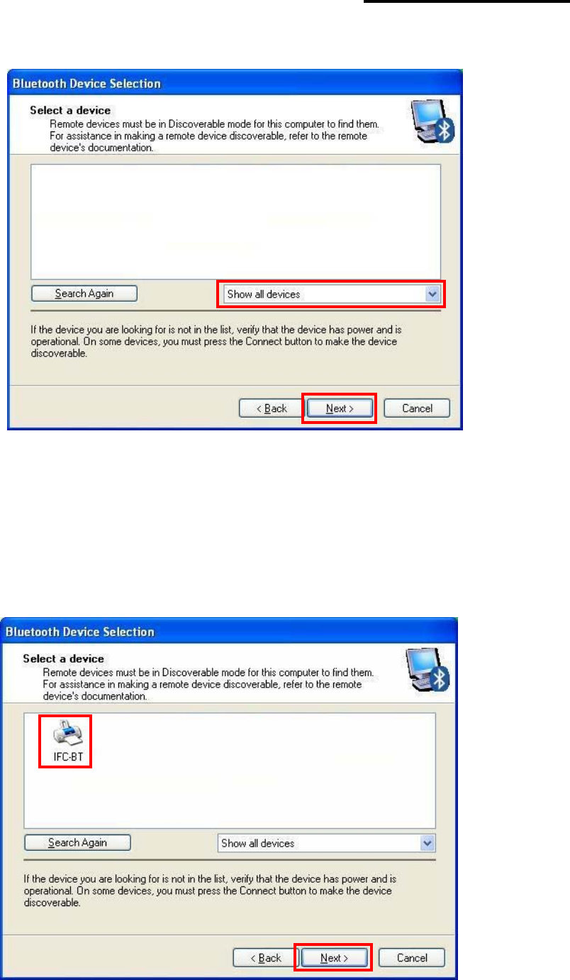 7) The program initiates a search for Bluetooth devices in the proximity. Click “Next”.