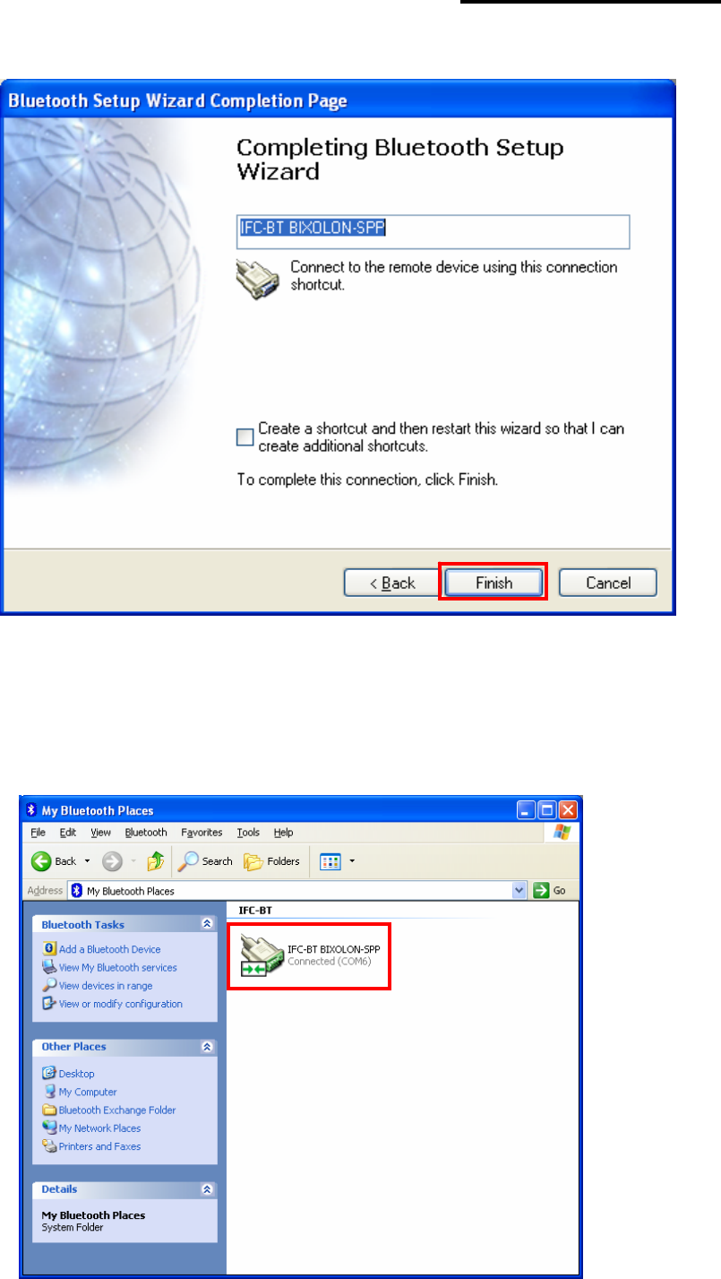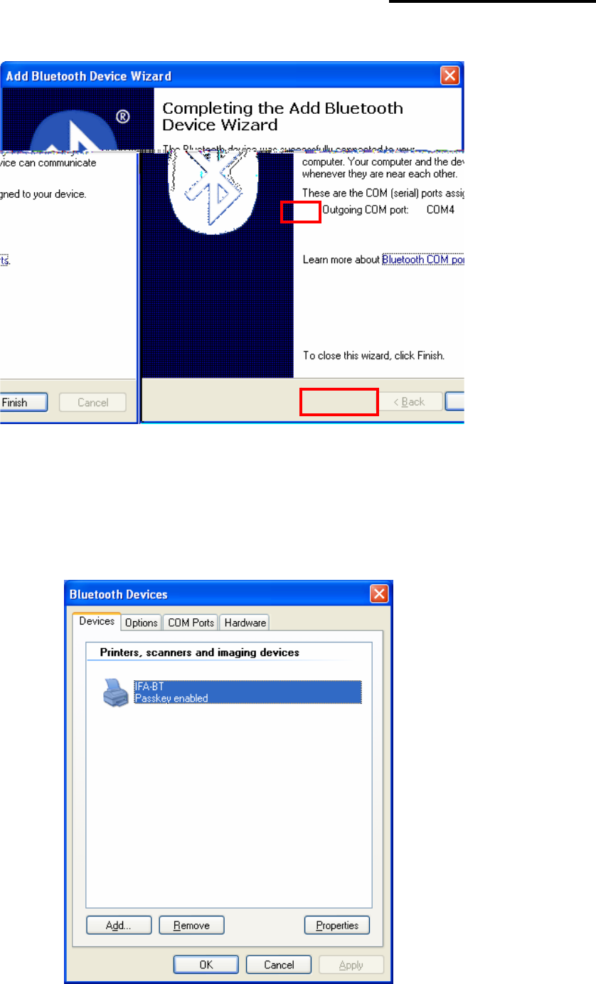 8) If the Passkey(PIN Code) is correct and pairing is completed, check COM port and click “Finish”.