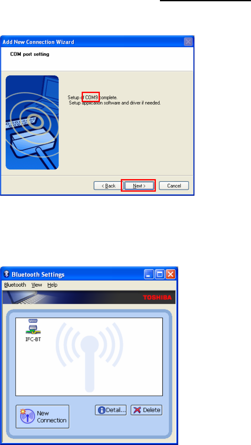 10) If the Passkey(PIN Code) is correct and pairing is completed, check COM port and click “Next”.